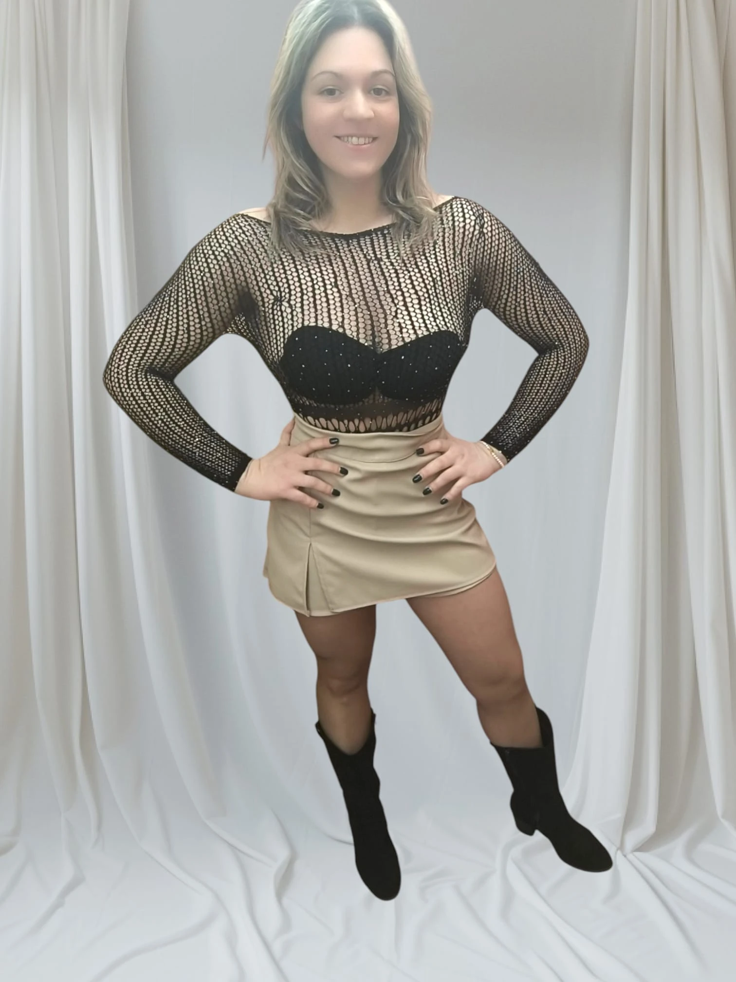 Body Transparente com Brilho é a escolha ideal para quem procura sofisticação e sensualidade num único look. Confeccionado em rede fina e delicada, oferece transparência na medida certa, criando um visual ousado mas equilibrado. Os pequenos brilhos aplicados ao longo do tecido acrescentam um toque de glamour, tornando esta peça perfeita para ocasiões especiais, eventos noturnos ou até produções mais arrojadas.
