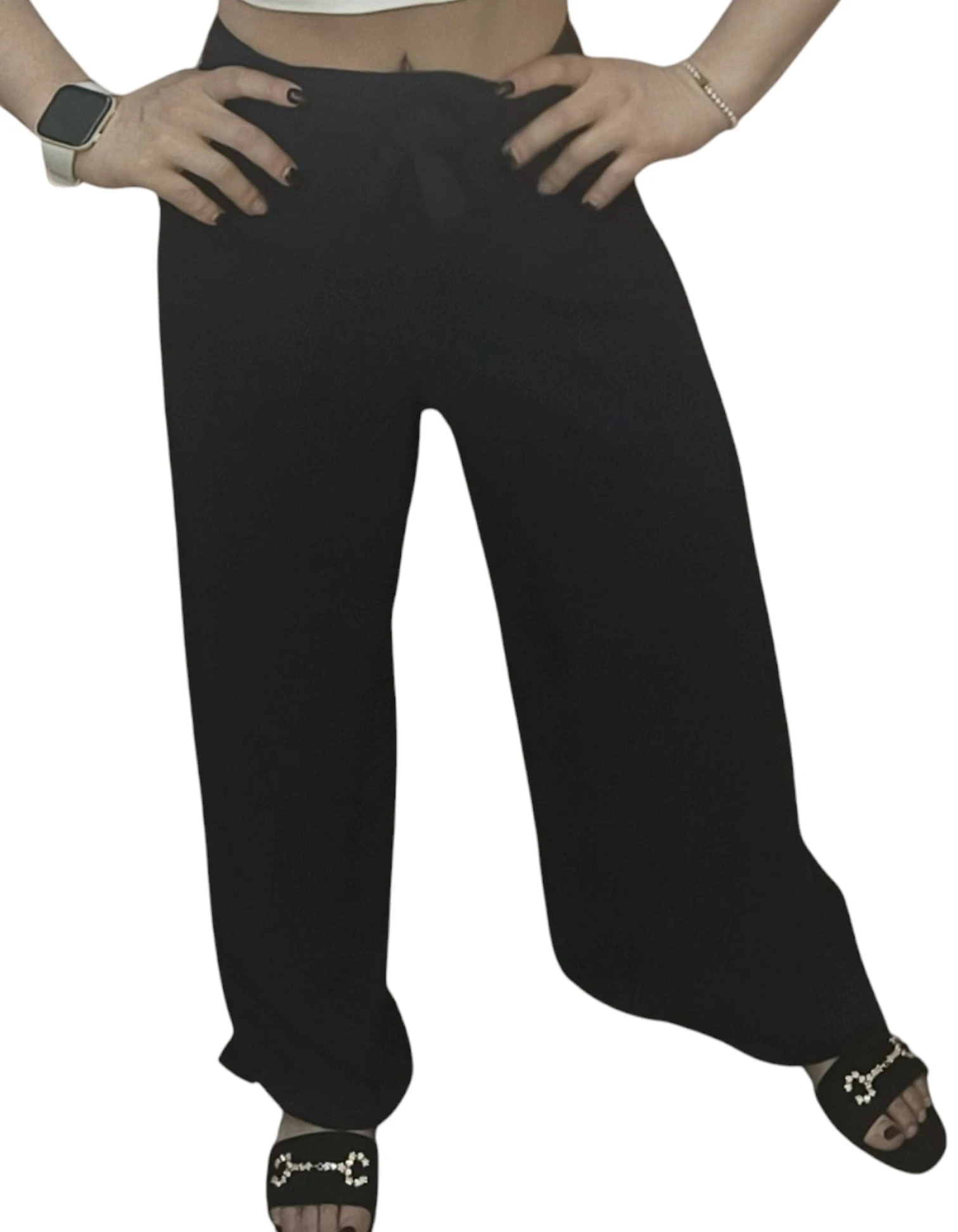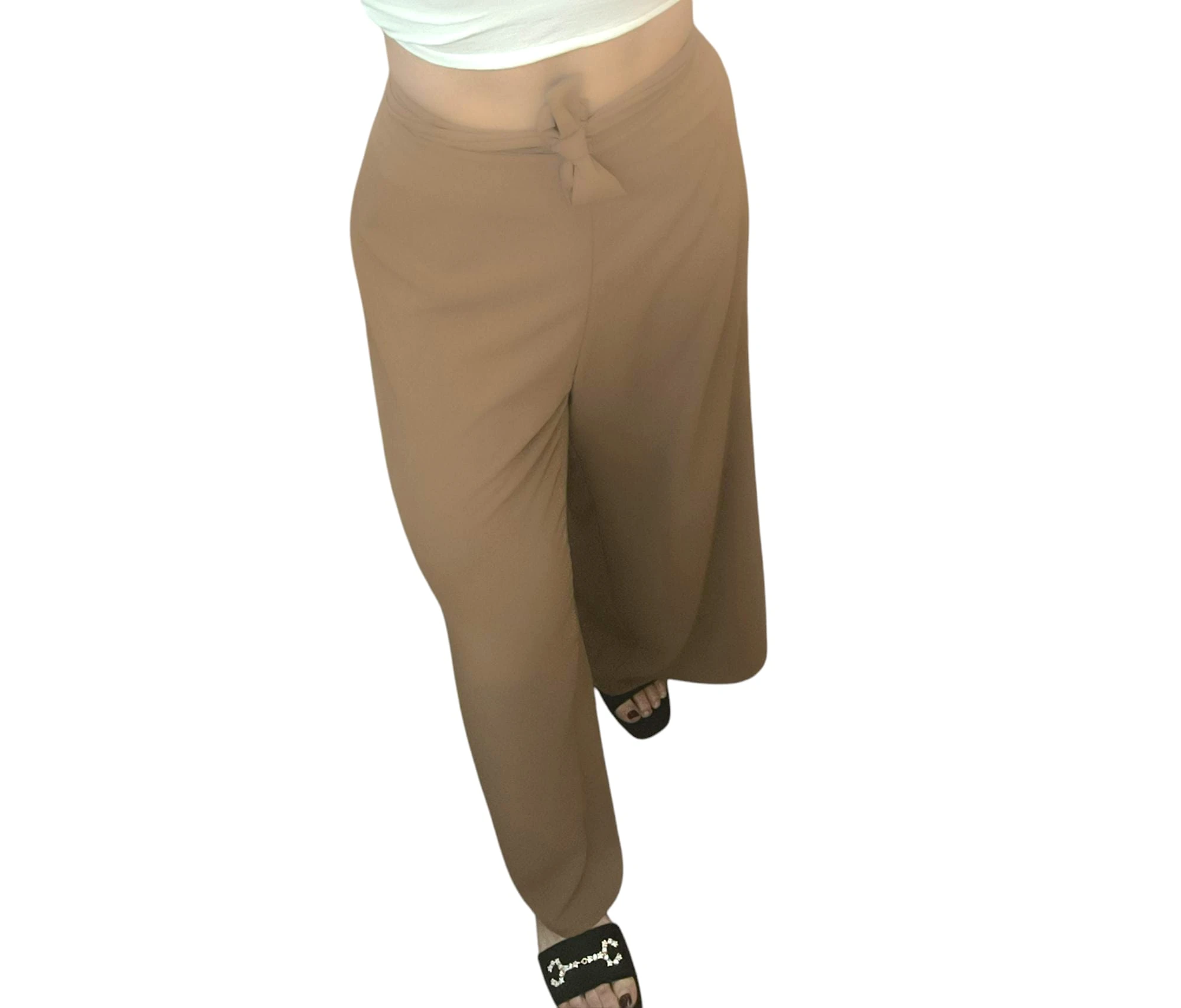 Descobre o conforto e a elegância das Calças Envelope Chic, com laço ajustável na cintura e tecido leve em três cores sofisticadas.