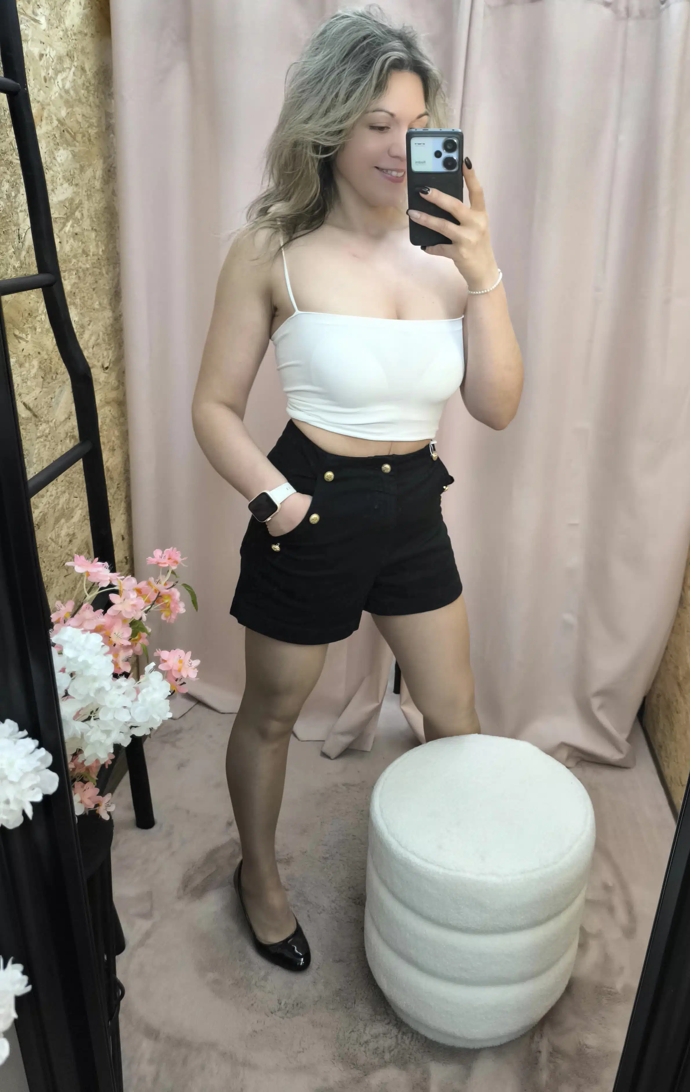 O corte moderno dos calções look de poder valoriza a silhueta, enquanto os botões frontais acrescentam um toque distinto e refinado ao look. Além disso, o design versátil permite combinações com tops justos e descontraídos, camisas formais ou blusas fluídas.