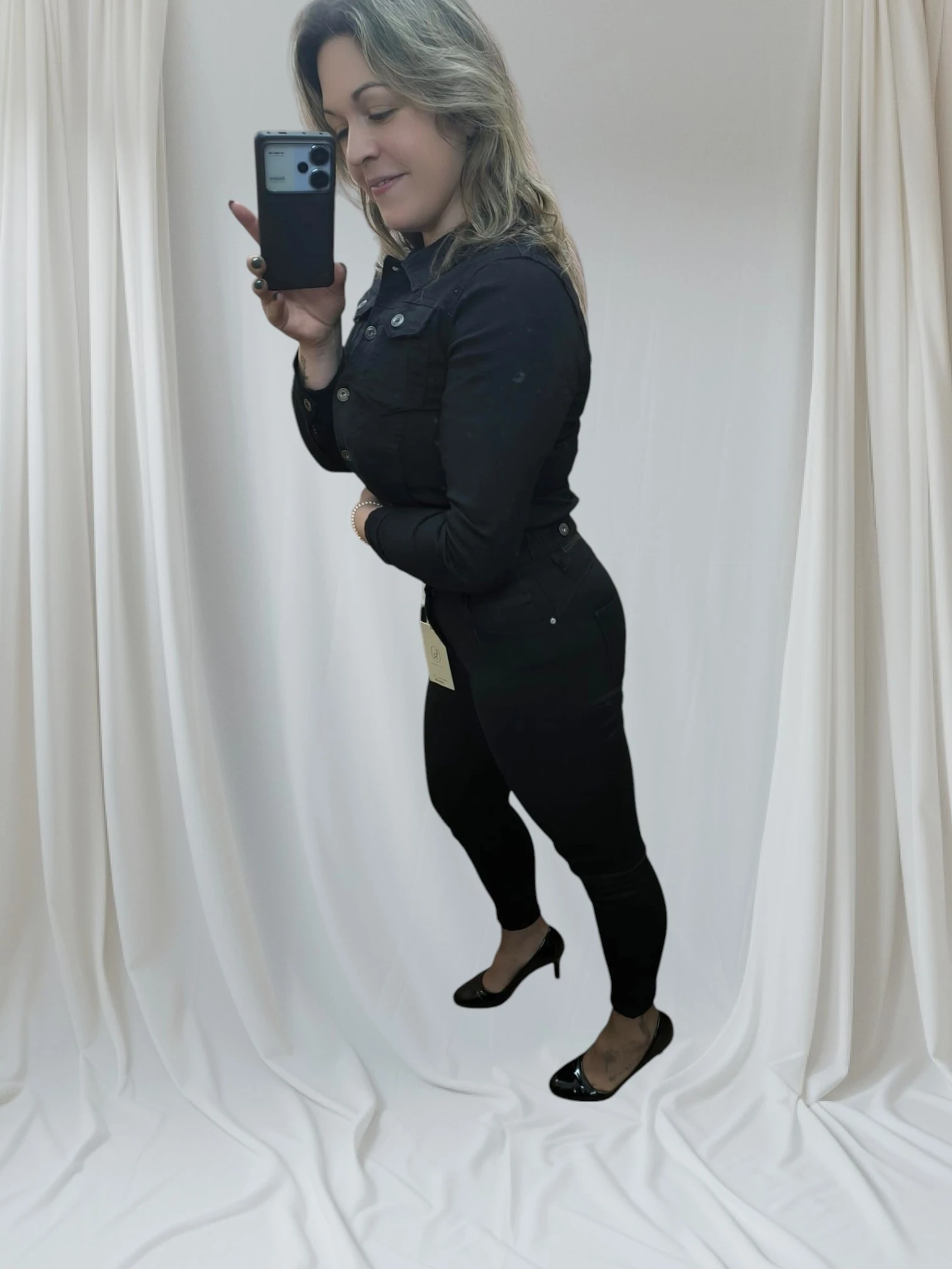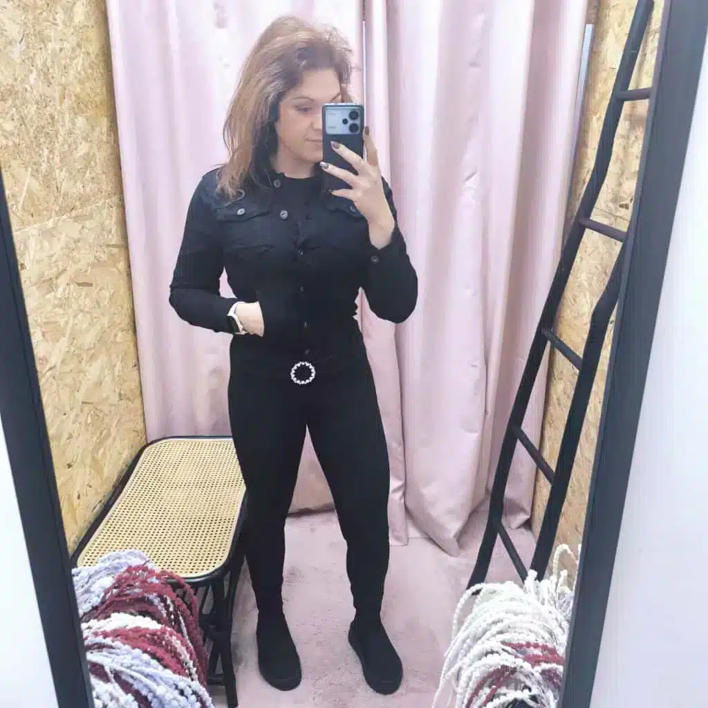 A casaca ganga preta feminina é uma peça essencial para quem busca estilo e versatilidade. Com um design ajustado ao corpo, realça a silhueta e combina perfeitamente com diferentes looks. Disponível nos tamanhos M, L e XL, esta casaca ganga preta feminina tem um acabamento sofisticado, ideal para composições casuais ou elegantes.