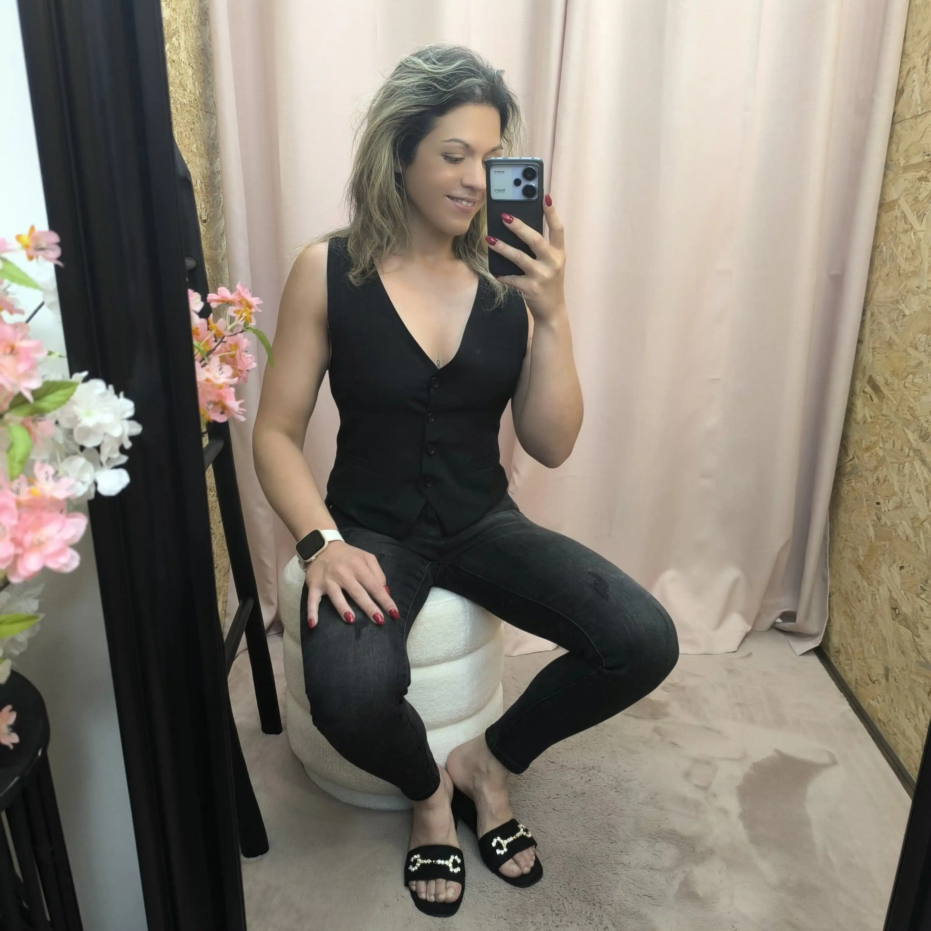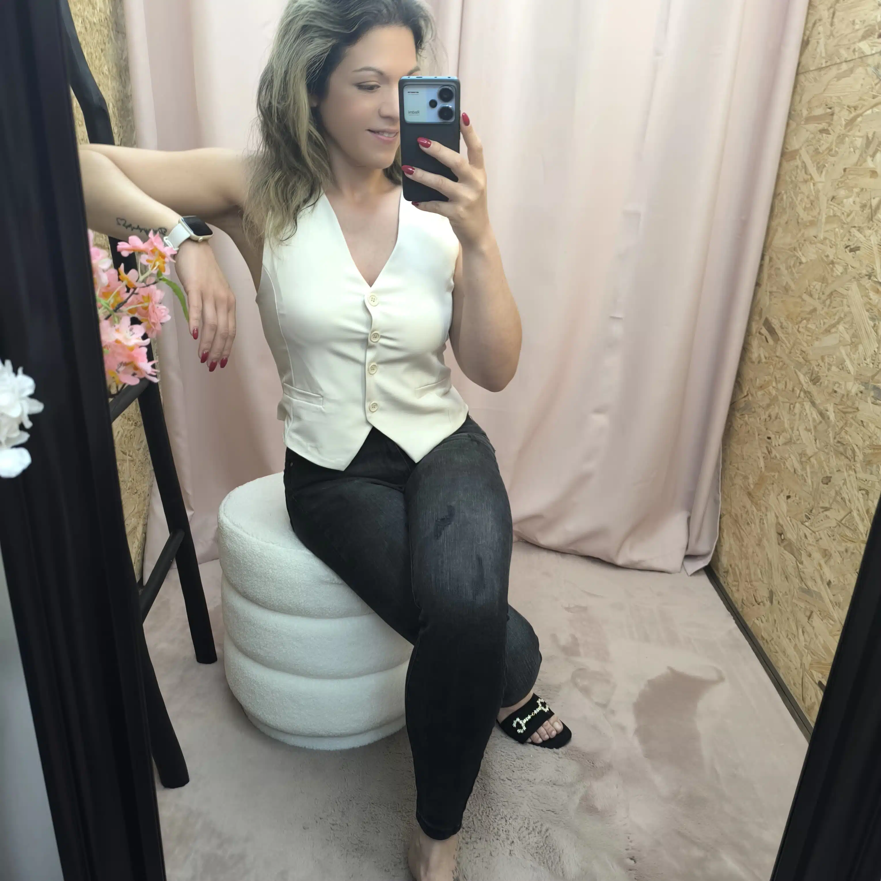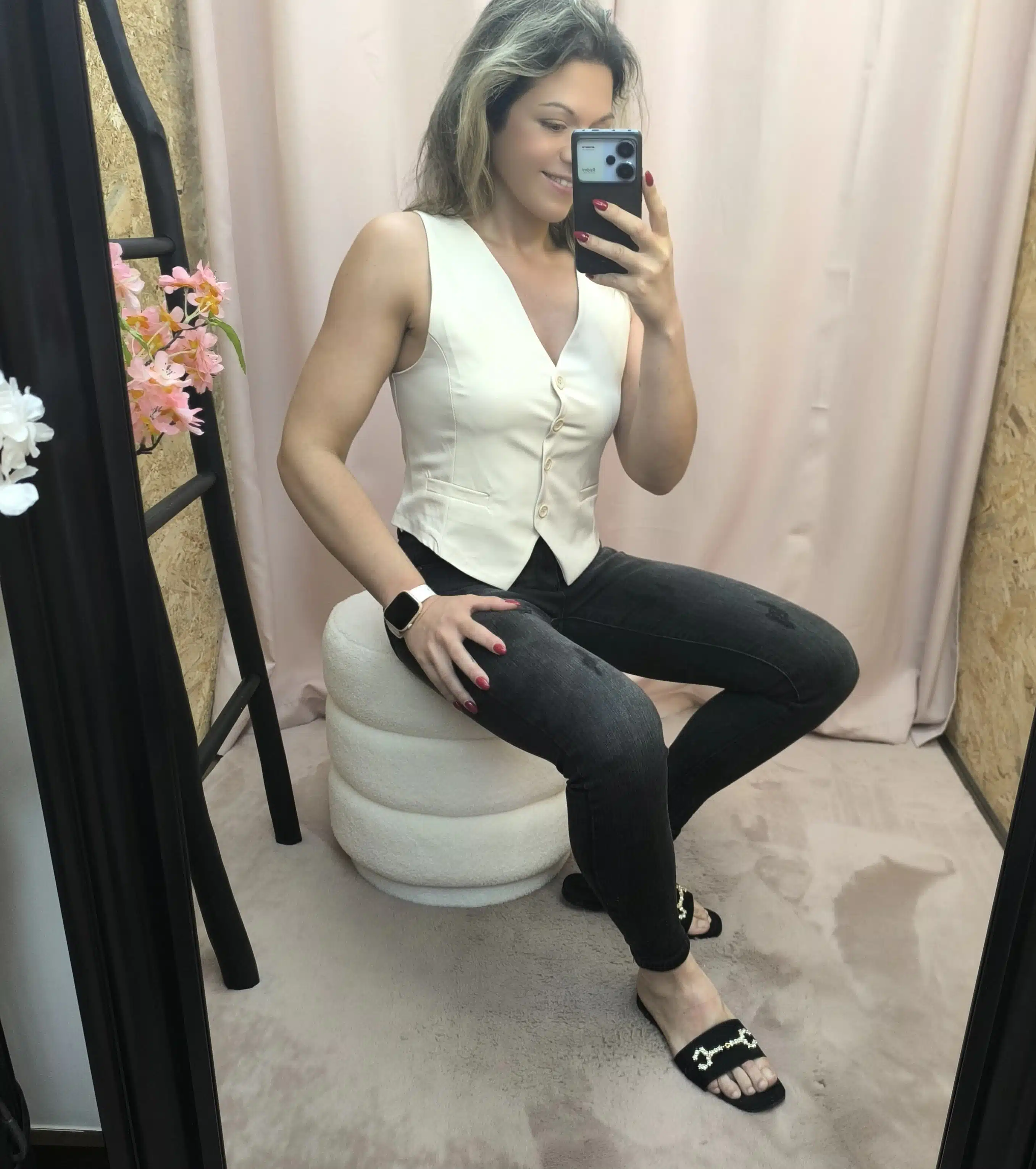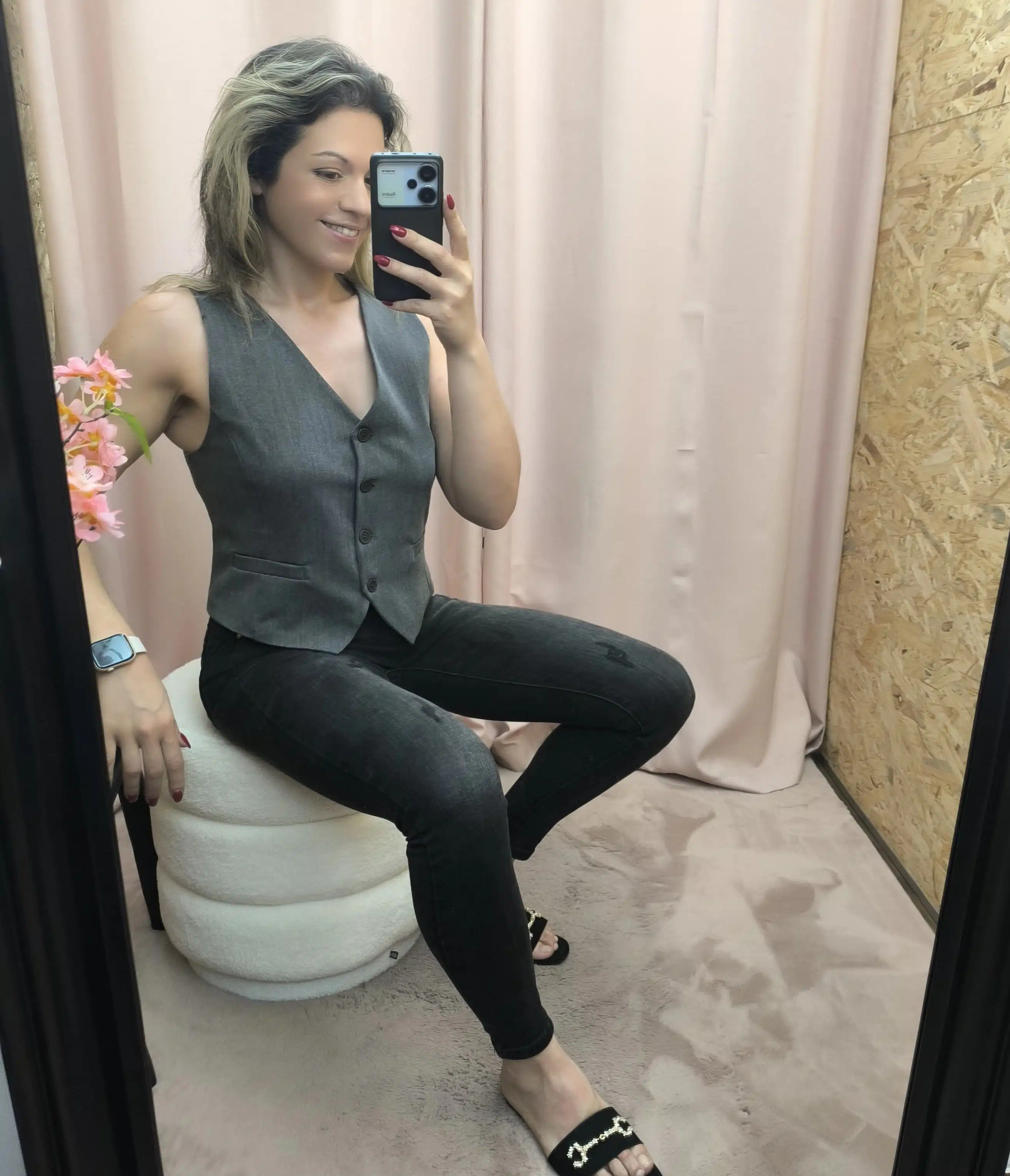 Extremamente versátil, o colete Alfaiataria Com Alma adapta-se tanto a contextos profissionais quanto a produções mais descontraídas. Por exemplo, combina perfeitamente com uma camisa em ambiente de trabalho ou com jeans e sandálias para um look casual. Além disso, o design cintado e o decote em V valorizam a silhueta feminina, criando um efeito alongado de forma subtil e confortável.