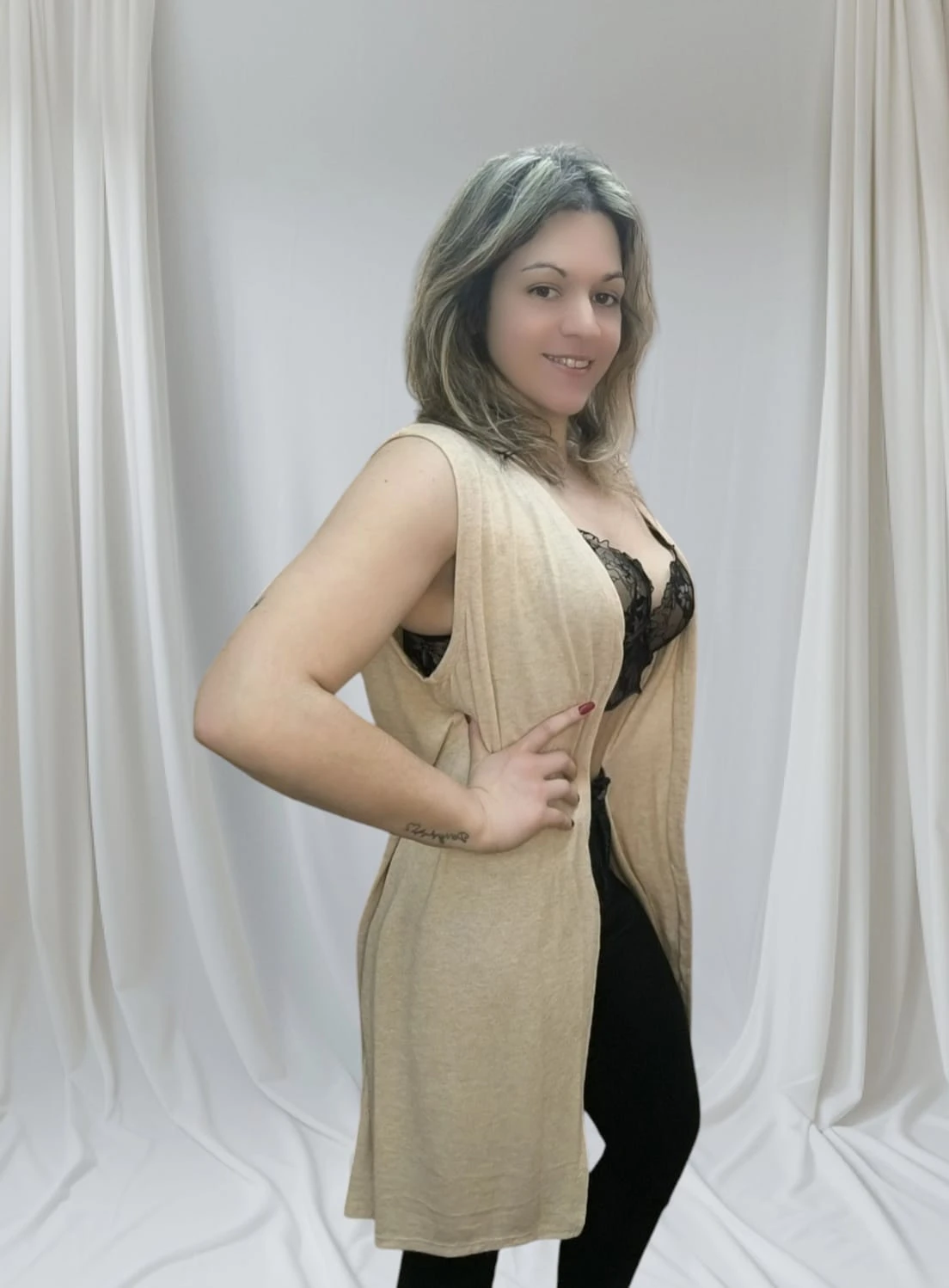 Graças ao seu corte fluido e ao tecido maleável, o colete veste bem do tamanho XS ao XXL. Como é uma peça de tamanho único, ele se ajusta ao corpo de forma natural, valorizando as curvas sem apertar. O tecido macio garante um toque agradável à pele, o que proporciona conforto ao longo do dia. Além disso, o modelo aberto permite liberdade total de movimentos, tornando-o perfeito para diversas combinações.