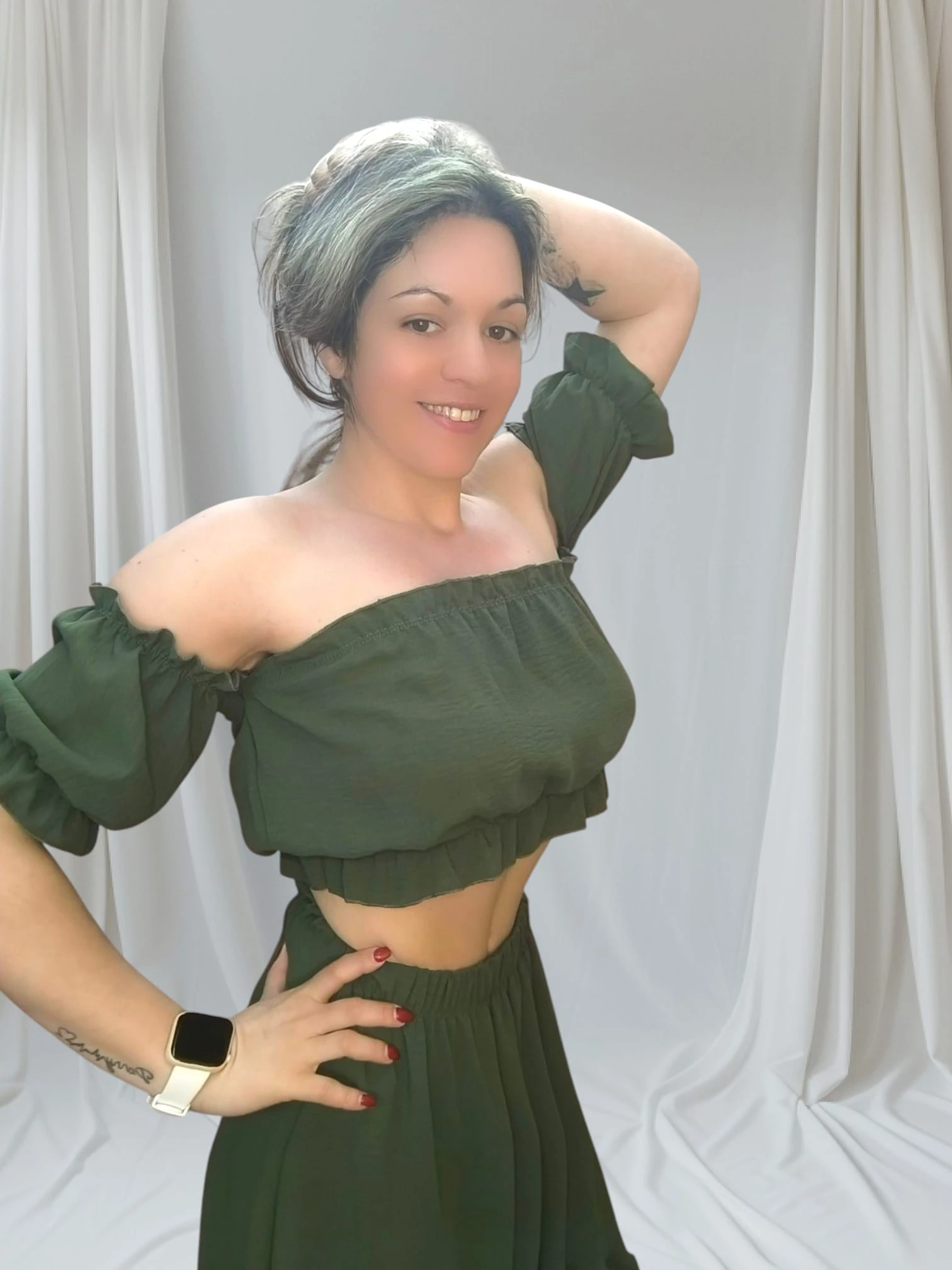 Disponível em duas cores — verde-oliva e preto — este conjunto foi pensado para valorizar vários estilos e tons de pele. Além disso, o tamanho único adapta-se confortavelmente até um L/XL, o que garante um ajuste natural ao corpo. A cintura elástica e o tecido maleável do top proporcionam liberdade e segurança em cada uso.