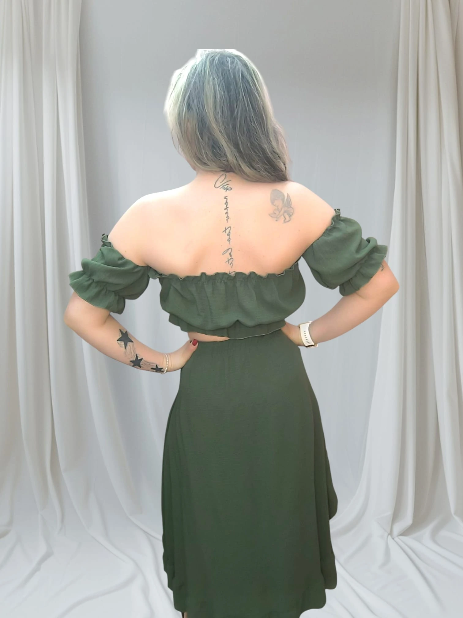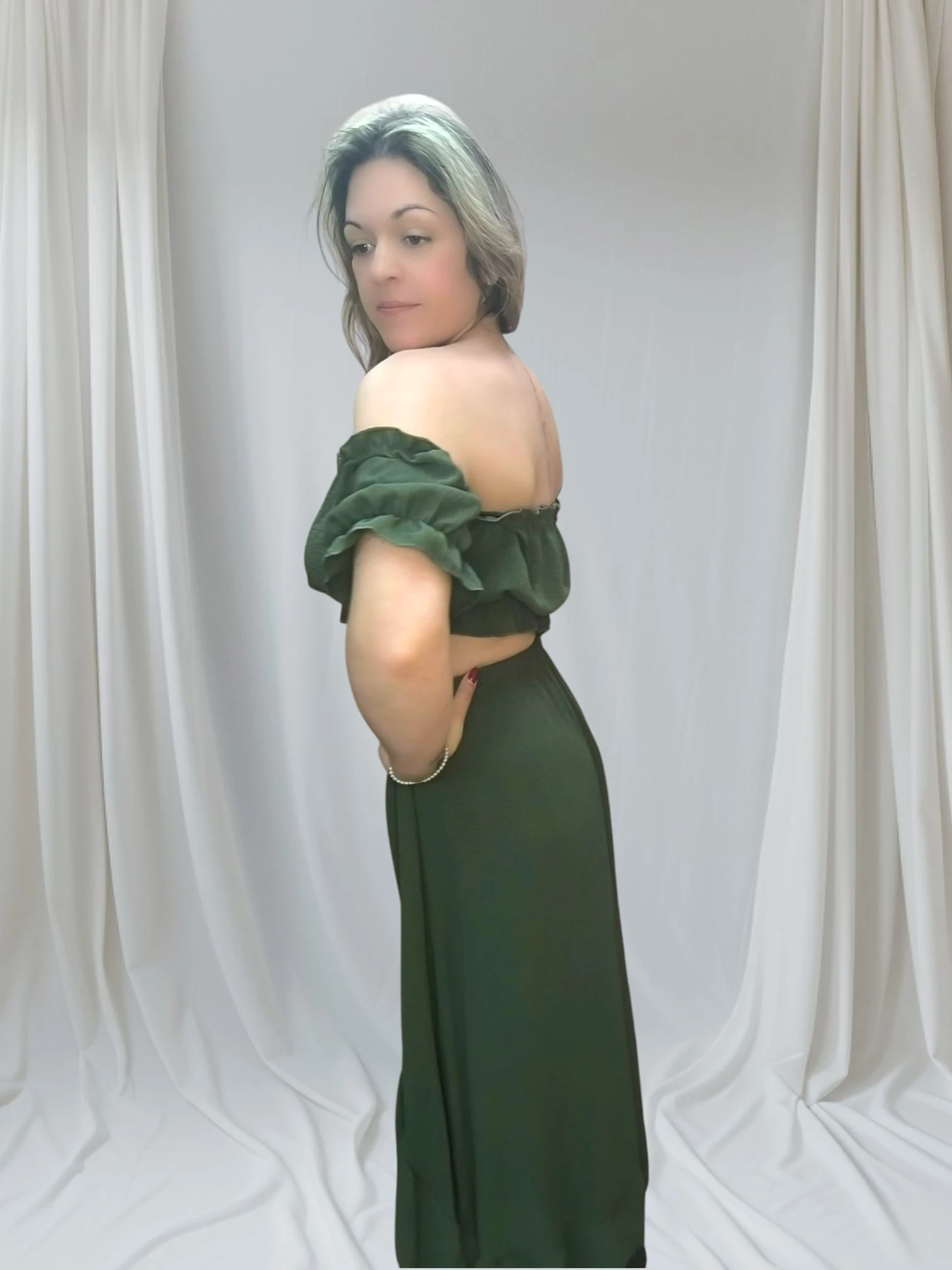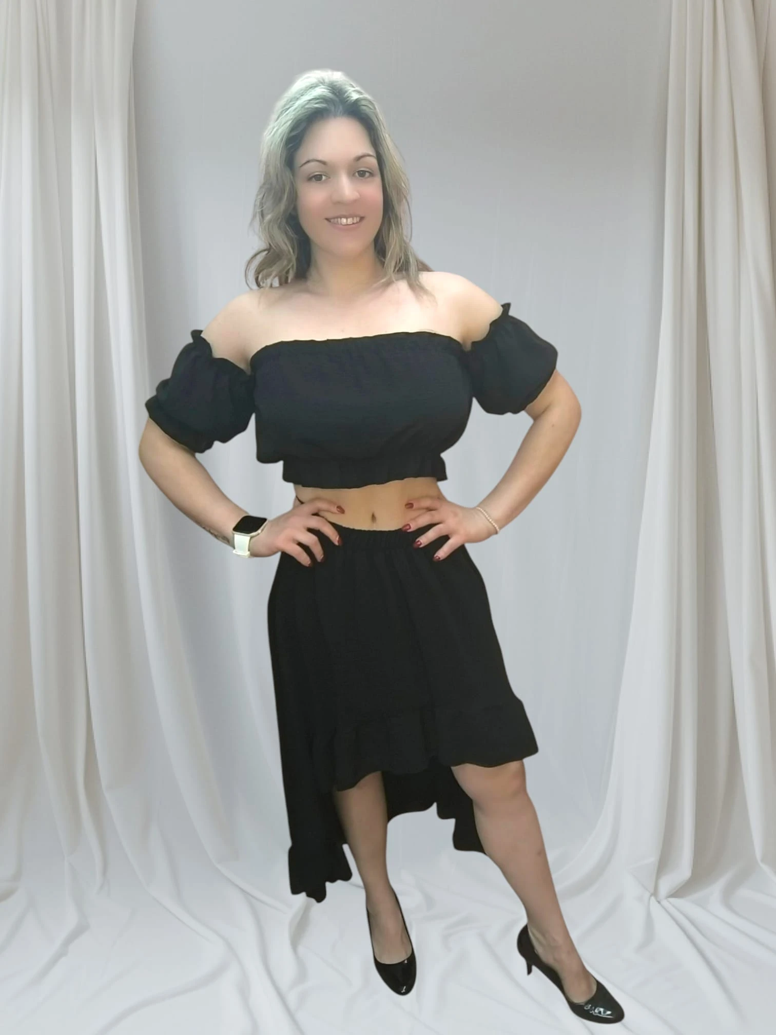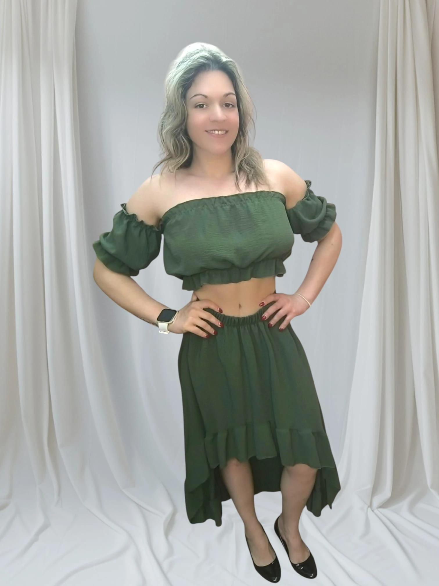 Descobre o charme do conjunto feminino elegante casual, ideal para mulheres que valorizam conforto, estilo e versatilidade no dia a dia. Este modelo combina um top ombro a ombro com uma saia assimétrica fluida, criando uma silhueta moderna e feminina. O tecido leve permite liberdade de movimento, enquanto os detalhes franzidos no top acrescentam um toque delicado e romântico.