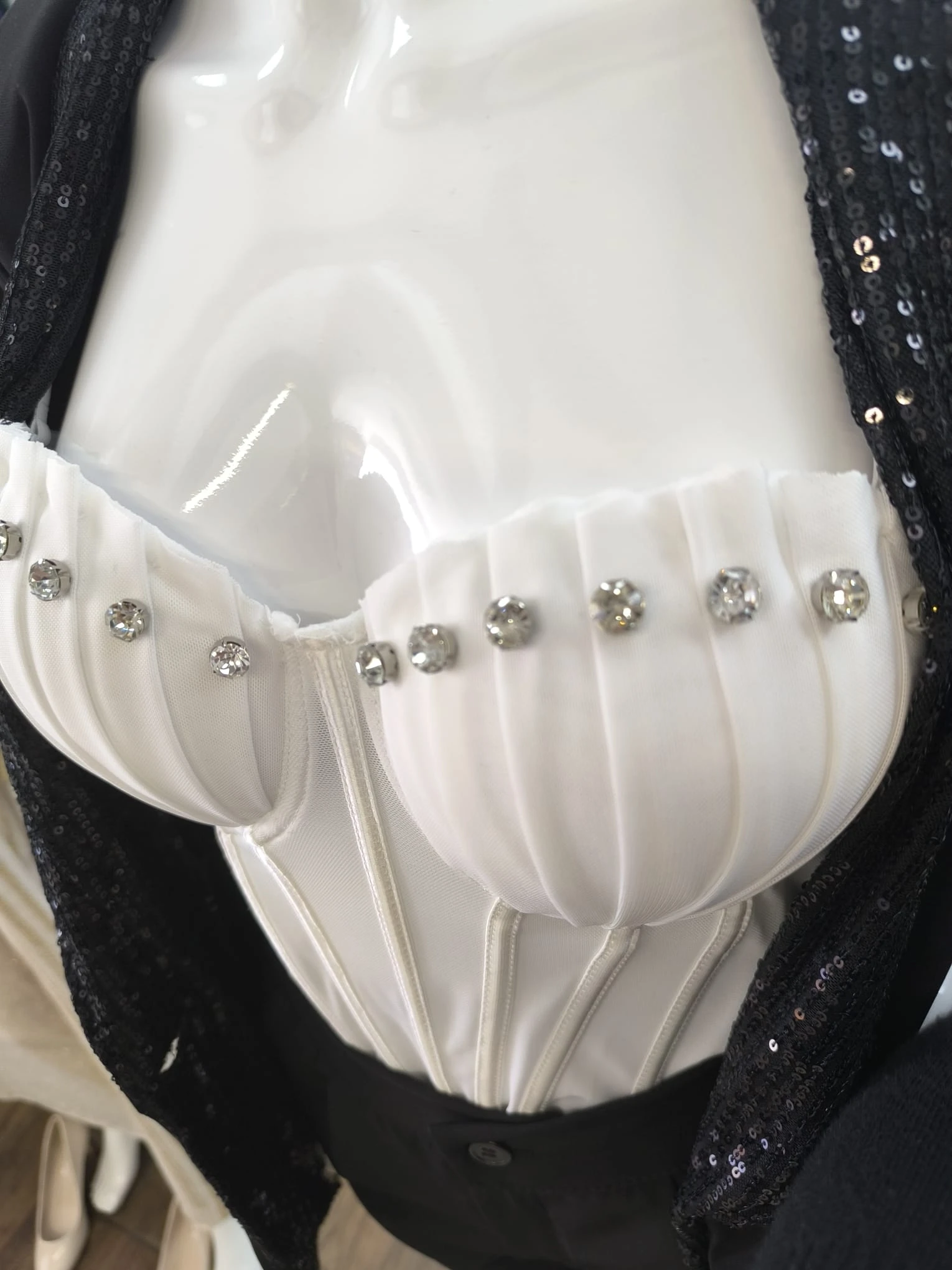 O Corpete Seduction Glam combina sensualidade e elegância com aplicações brilhantes e transparência subtil. Ideal para looks poderosos e sofisticados.