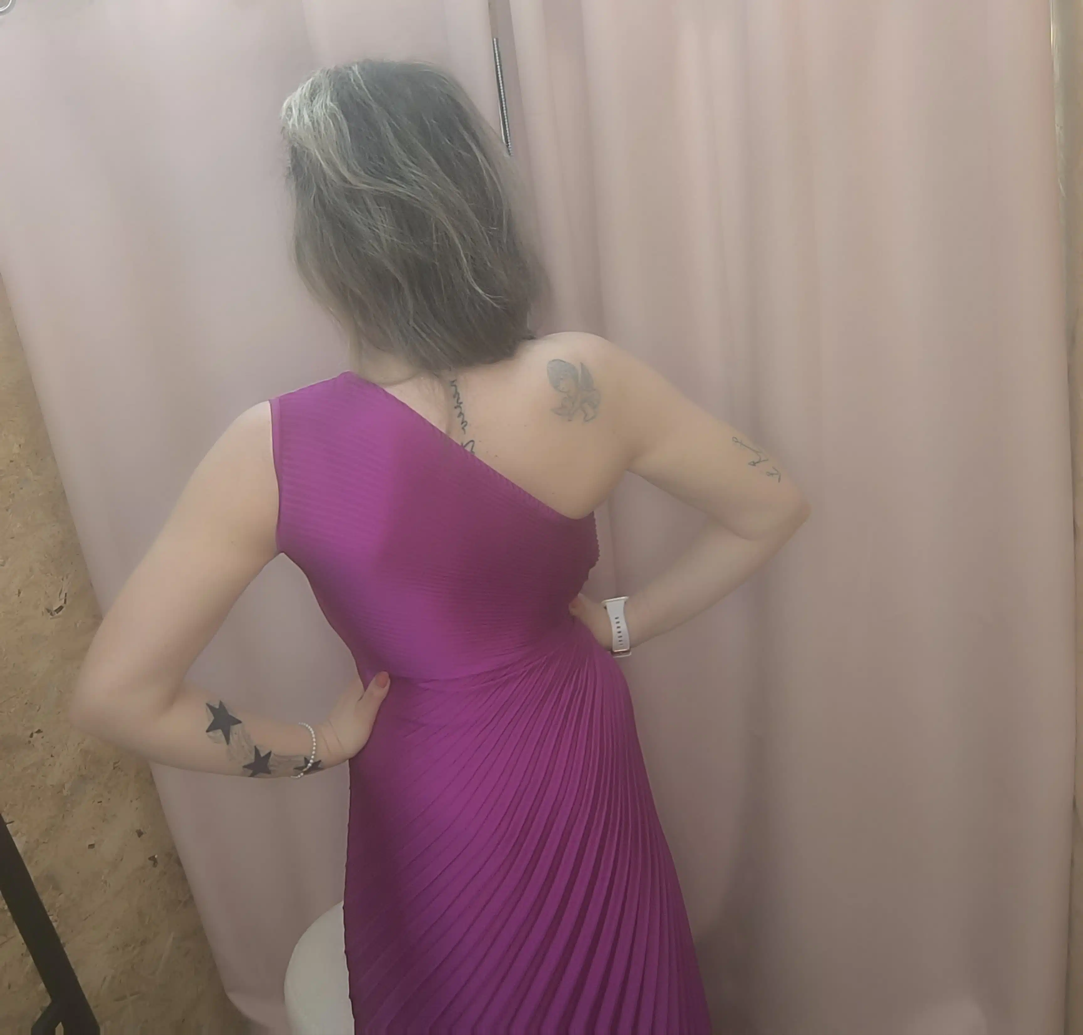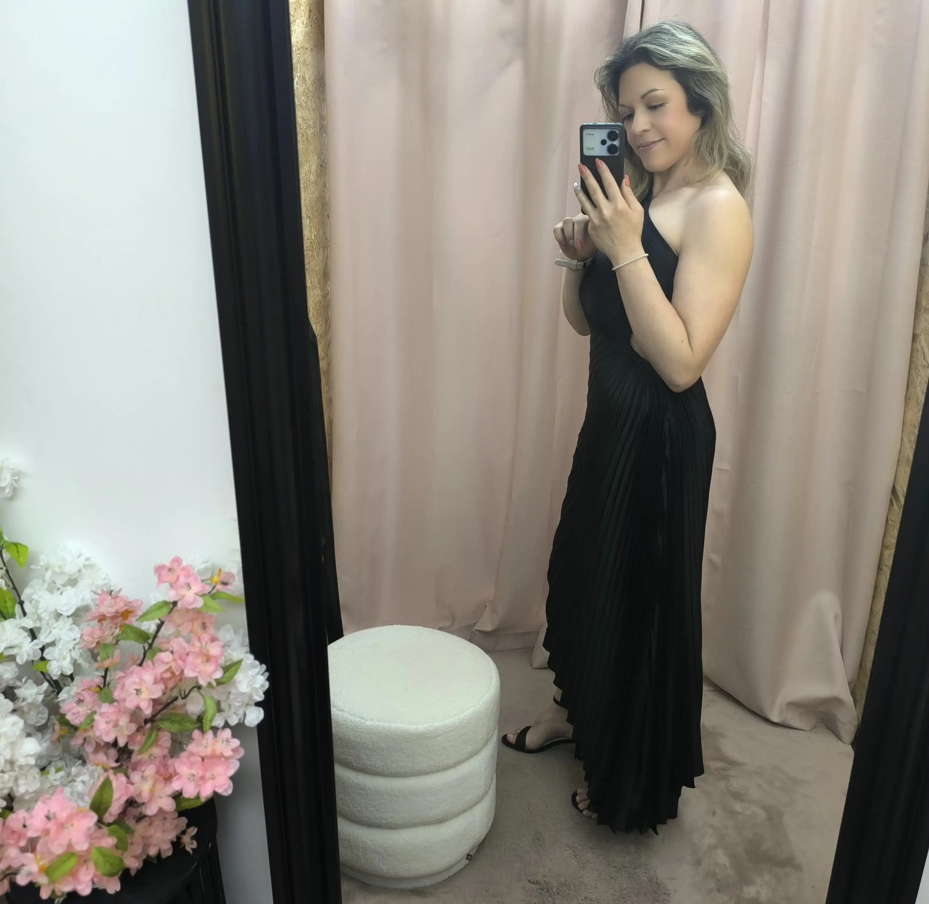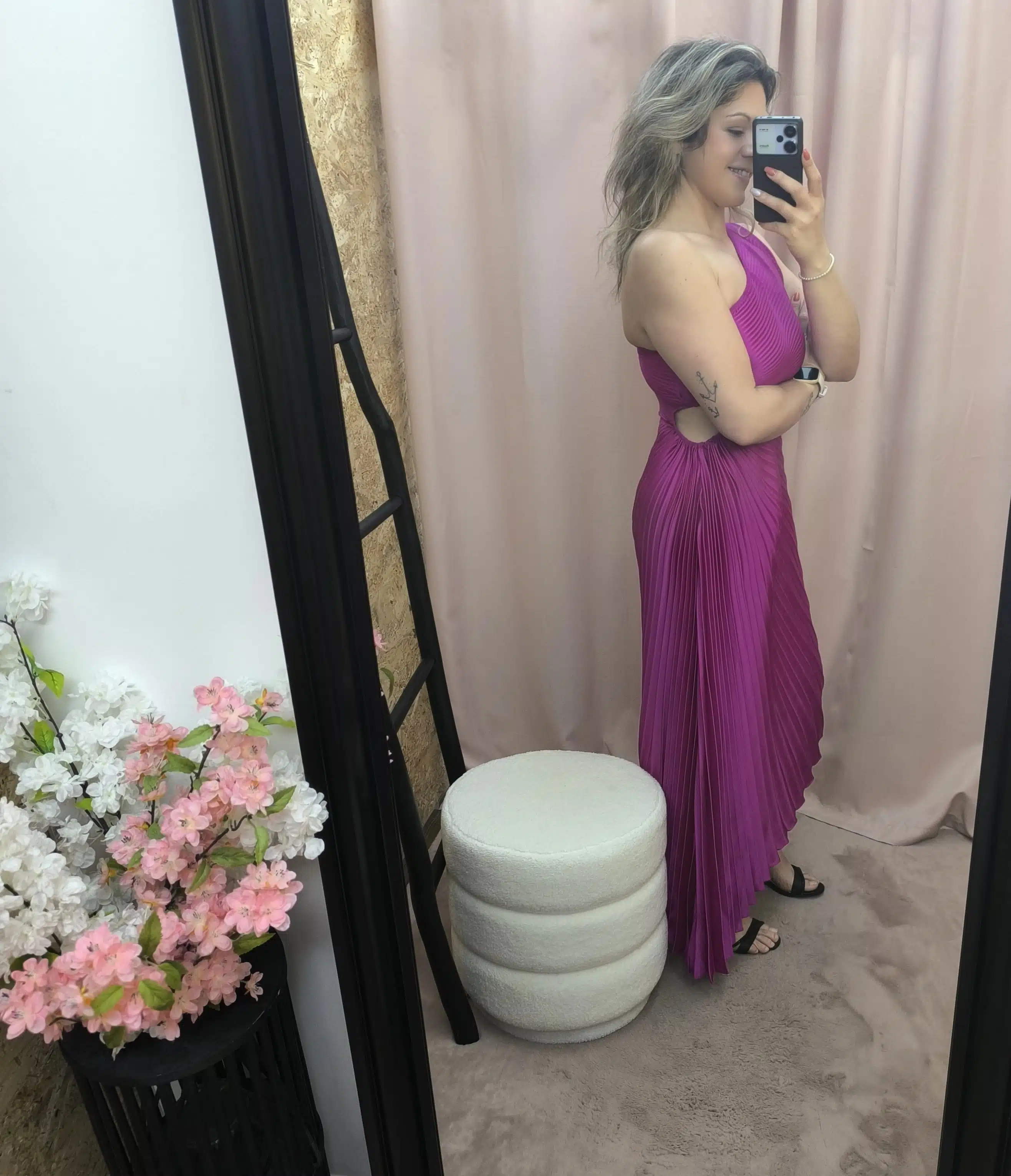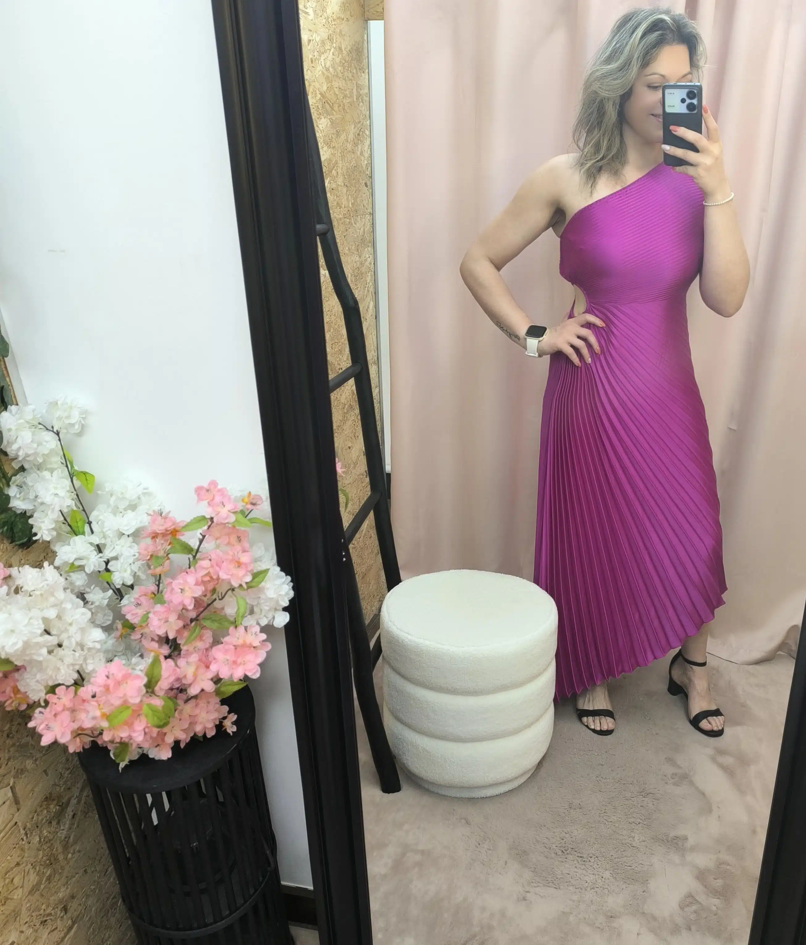 O Dress Divine Pleats é um verdadeiro ícone de elegância contemporânea, perfeito para mulheres que desejam unir estilo, conforto e sofisticação. Este vestido destaca-se pelo seu design assimétrico de um ombro só, que confere um toque moderno e arrojado à peça. O corte plissado, que percorre toda a extensão do vestido, cria um movimento fluido e feminino, valorizando a silhueta de quem o veste. Além disso, o recorte lateral adiciona um detalhe ousado e sofisticado, tornando-o ideal para ocasiões especiais onde se deseja marcar presença com subtileza e classe.