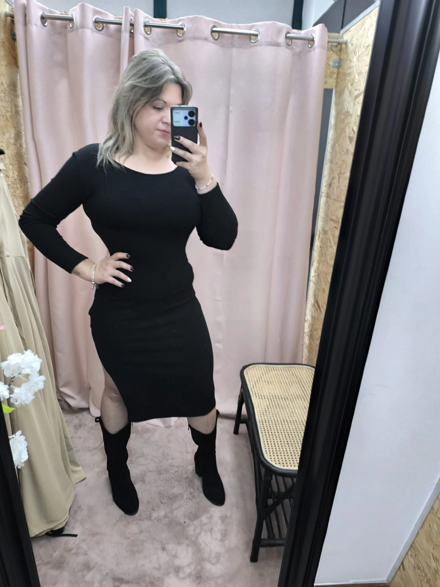 Este vestido de malha canelada é a escolha perfeita para os dias de outono e inverno, combinando elegância e conforto em uma peça ajustável ao corpo. Feito com um tecido macio e elástico, ele se adapta perfeitamente a diferentes tipos de corpo, sendo tamanho único. O corte justo realça a silhueta, enquanto a racha lateral adiciona um toque moderno e ousado, oferecendo liberdade de movimento e sofisticação. Ideal para eventos casuais e elegantes, o vestido traz uma versatilidade que o torna indispensável no guarda-roupa da estação mais fria.