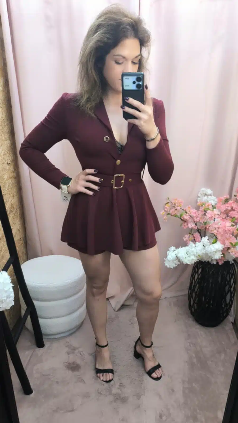 Está disponível em duas cores versáteis — bordeaux e bege — que combinam com diversos estilos e ocasiões. Seja para um jantar especial, uma reunião importante ou até um evento mais formal, o Macacão Femme Power garante um look impactante e cheio de personalidade.