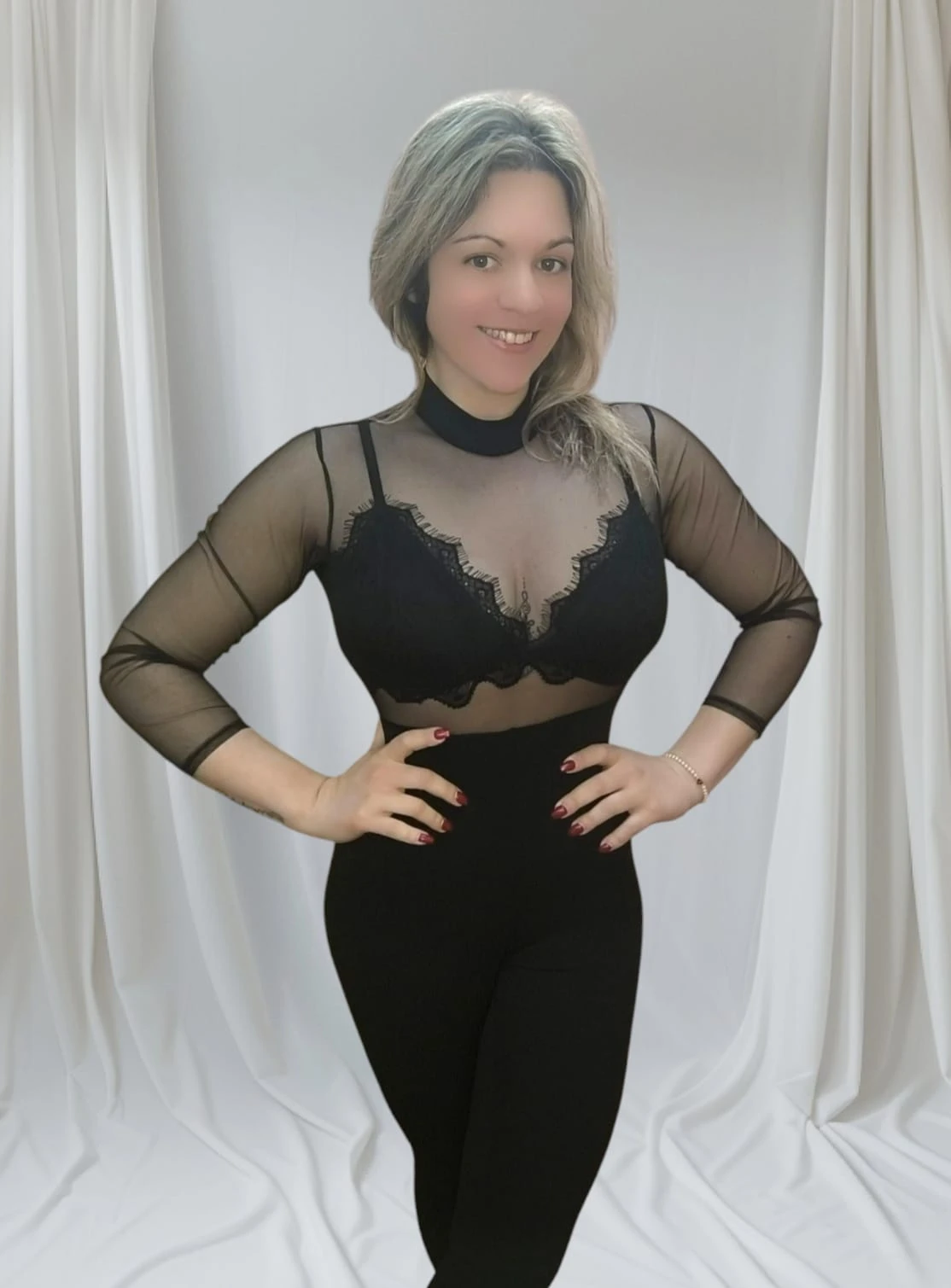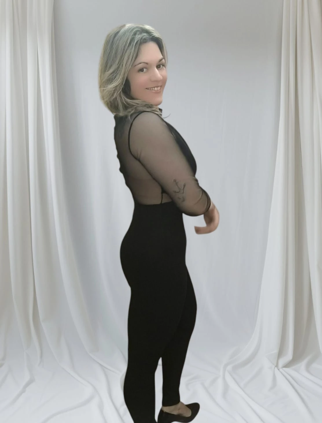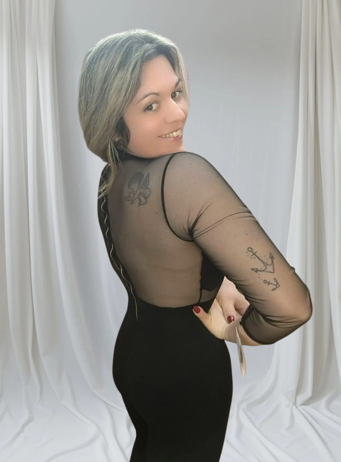 A sua modelagem ajustada valoriza e realça a silhueta, enquanto a parte superior, em tecido transparente acrescenta um toque sofisticado e cria um contraste elegante e sofisticado. O detalhe nas costas adiciona um toque de ousadia, tornando esta peça ideal para ocasiões especiais ou para quem deseja destacar-se com um visual impactante.