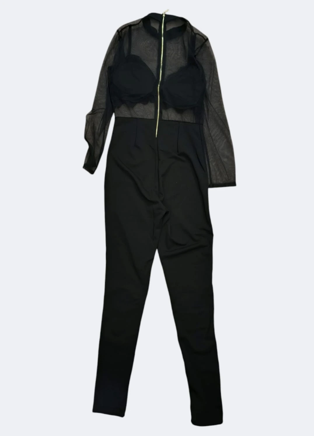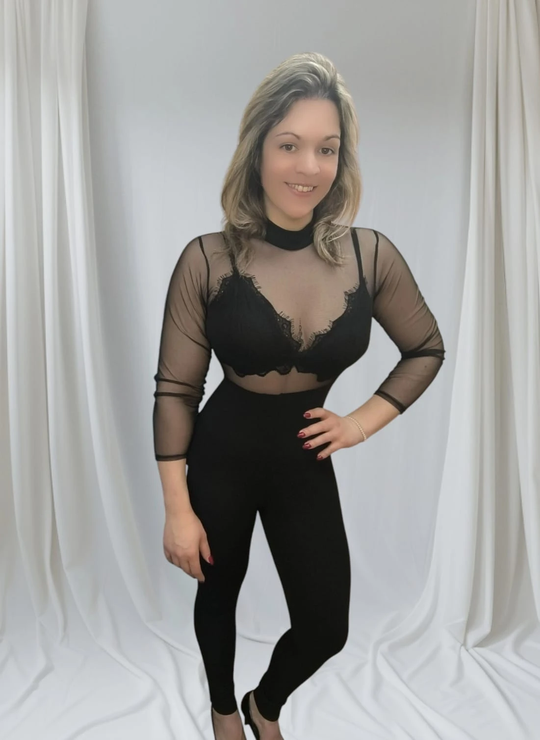 O Macacão Sedução em Renda é a peça perfeita para quem procura sofisticação e ousadia num único look. Seu design moderno combina transparência delicada em tule com um sutiã rendado incorporado, criando um visual refinado e cheio de charme.