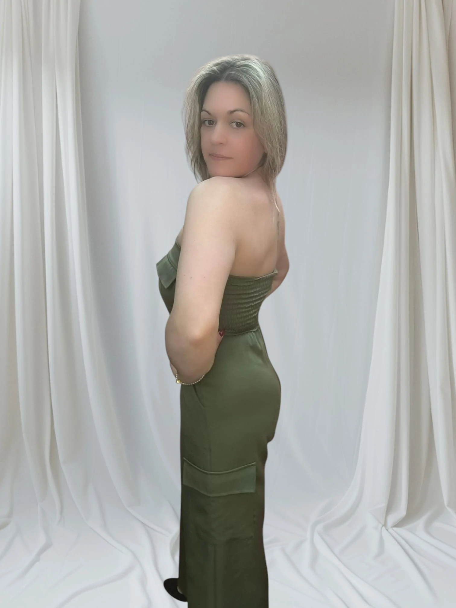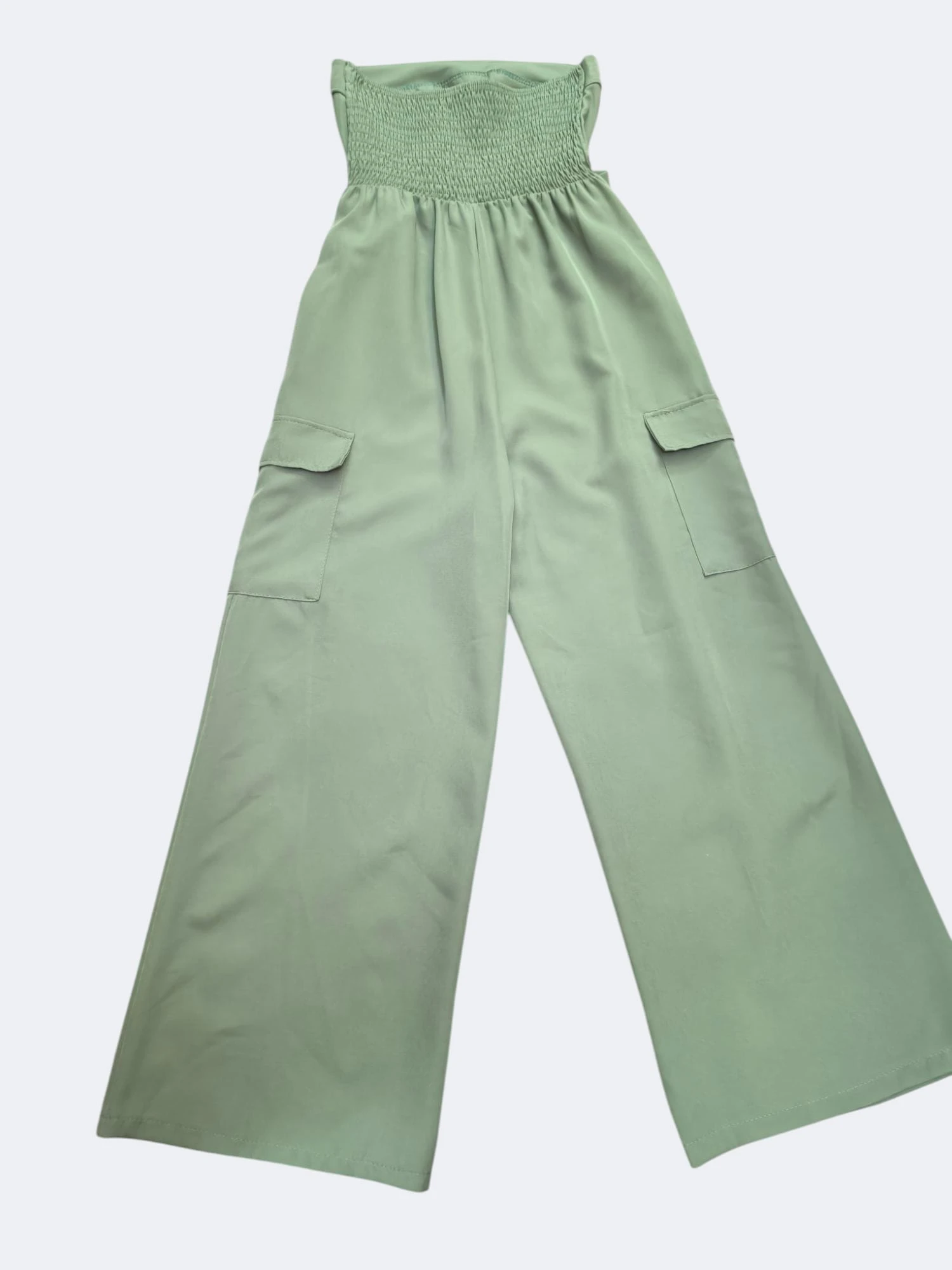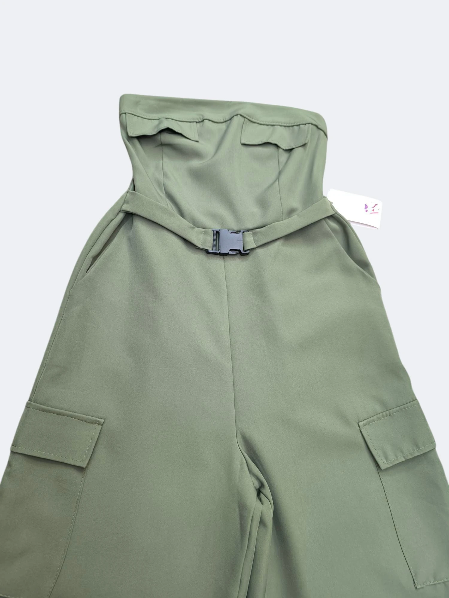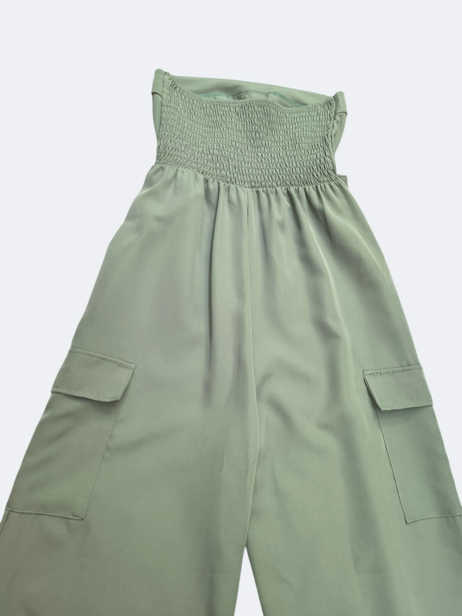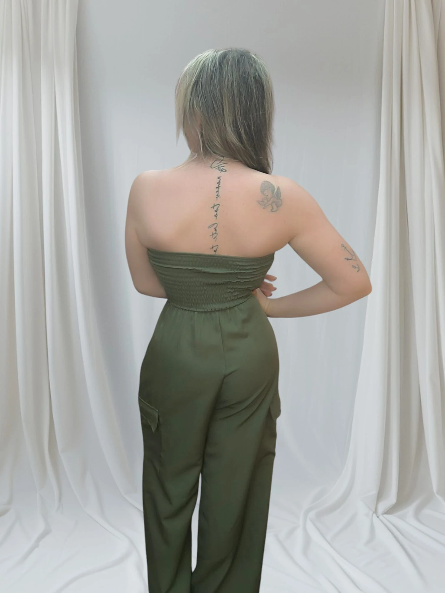 Este macacão verde sem alças combina elegância e conforto num só look, sendo a escolha ideal para mulheres modernas. Com um corte actual e um tom de verde sofisticado, adapta-se facilmente a várias ocasiões — desde um passeio descontraído até a um jantar especial.