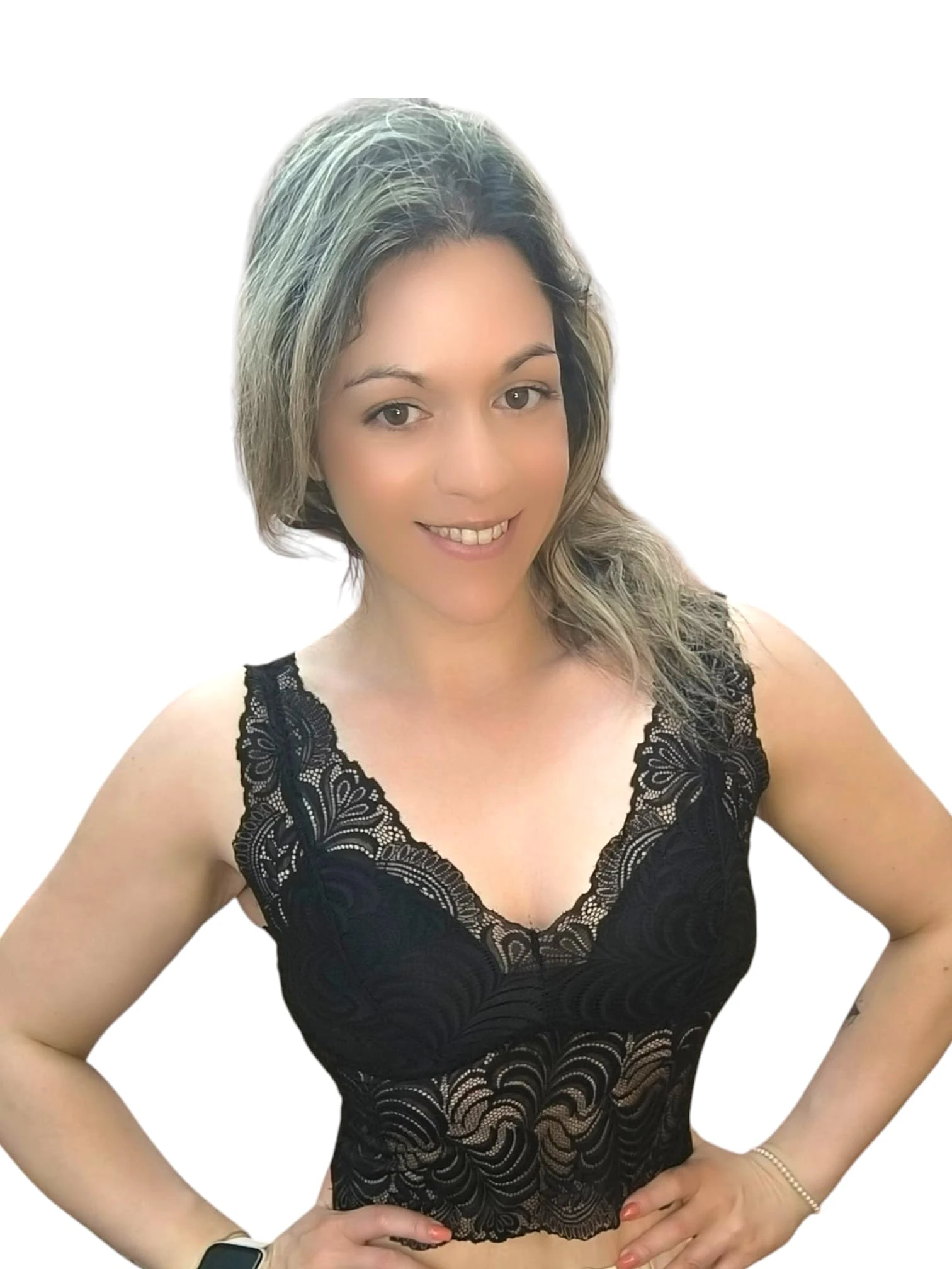 O Top Renda Elegance é a fusão perfeita entre sensualidade e conforto. Com copas embutidas e acabamento em renda floral, é ideal para usar por si só ou como peça complementar em looks elegantes.