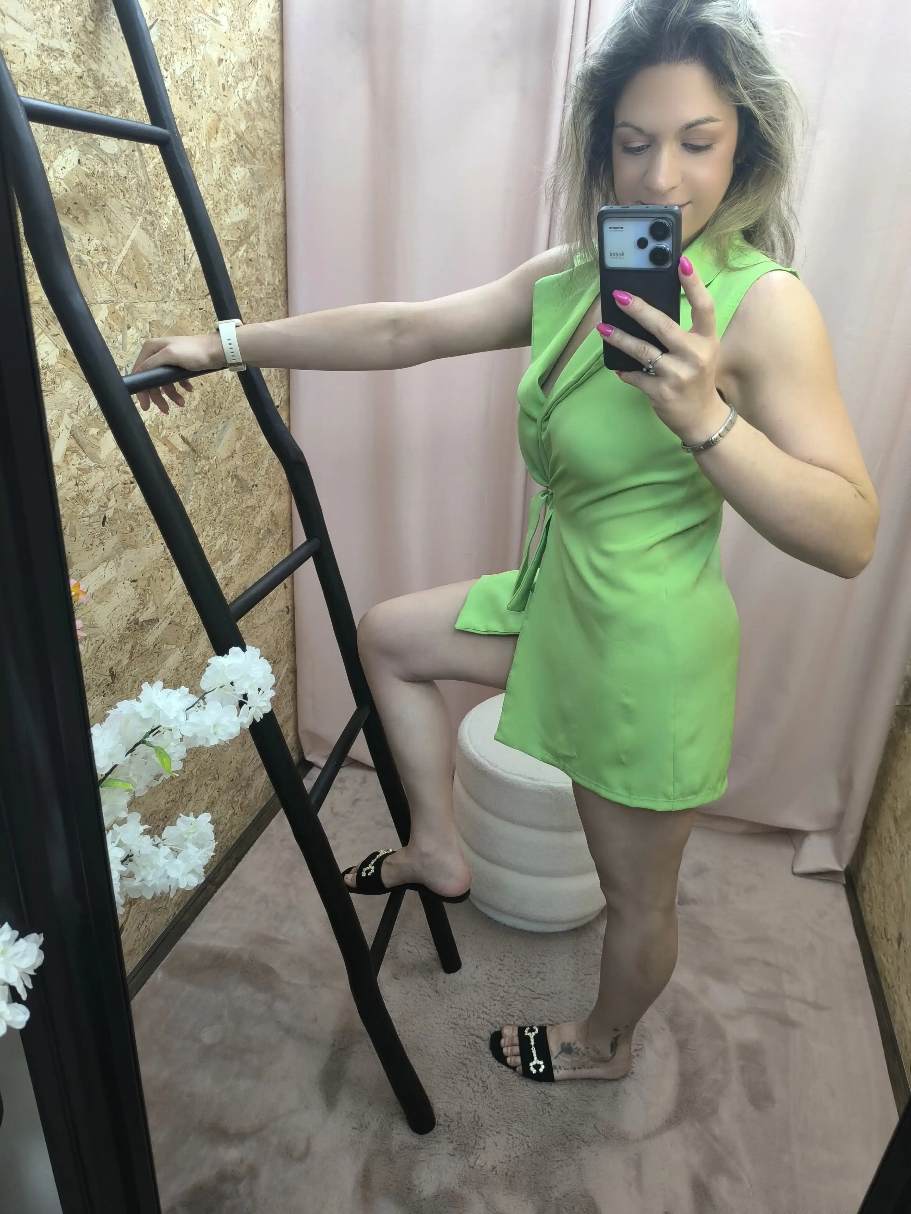 Dá um toque de cor e elegância ao teu look com o Vestido Colete Verde Lima – versátil, moderno e confortável. Tamanho único, veste até L.