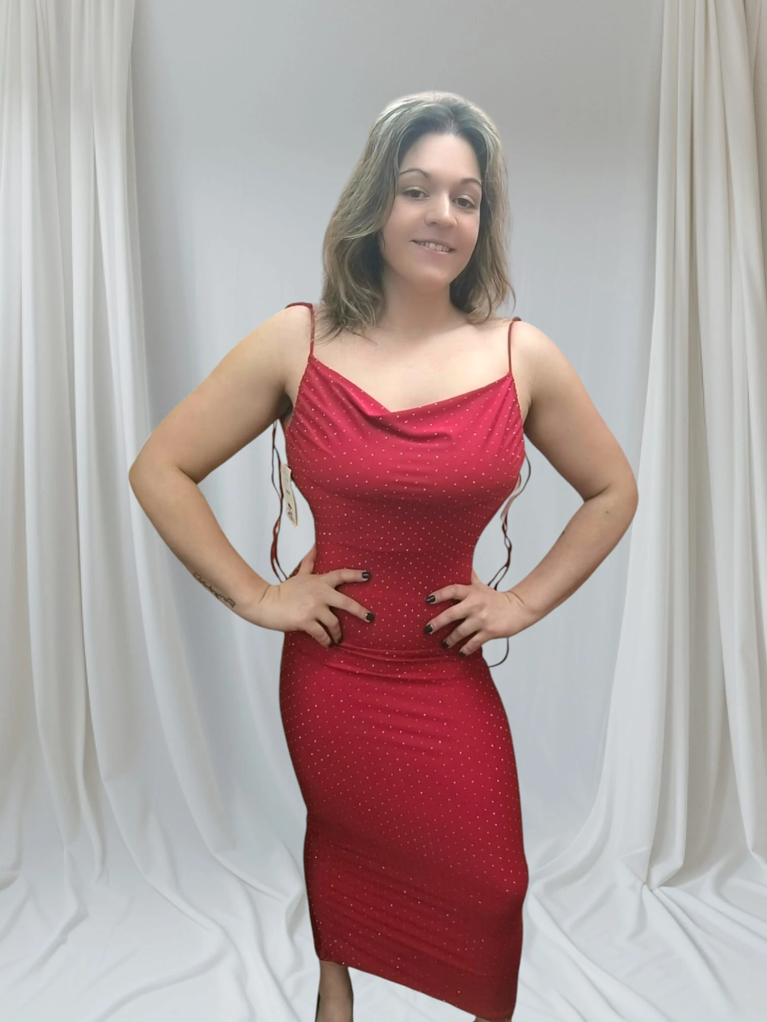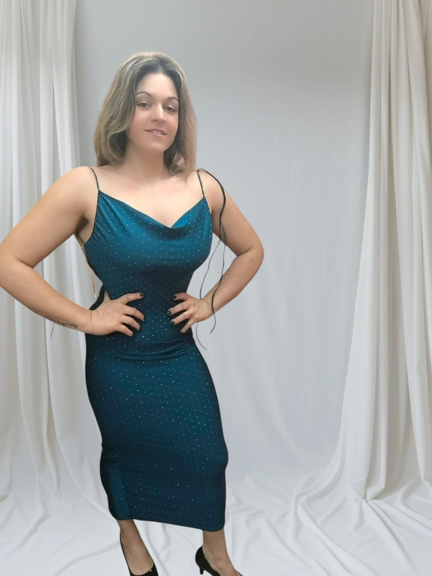 Este vestido costas abertas é a combinação perfeita de elegância e sensualidade. Com uma modelagem justa, valoriza a silhueta feminina de forma sofisticada, enquanto o decote drapeado na parte frontal confere um toque de delicadeza e modernidade. O brilho subtil do tecido adiciona um charme irresistível, tornando-o ideal para ocasiões especiais em que pretendes brilhar com estilo.