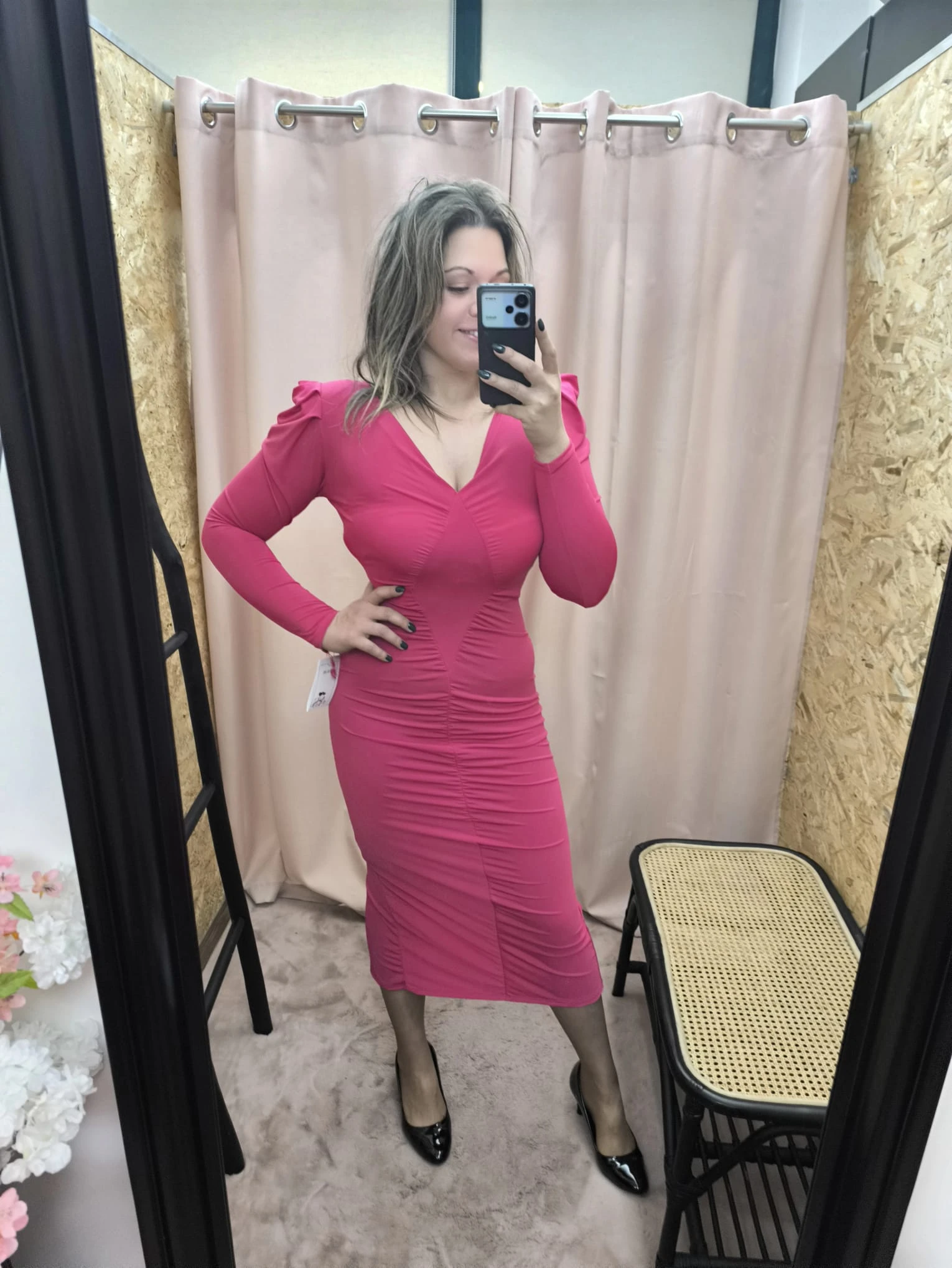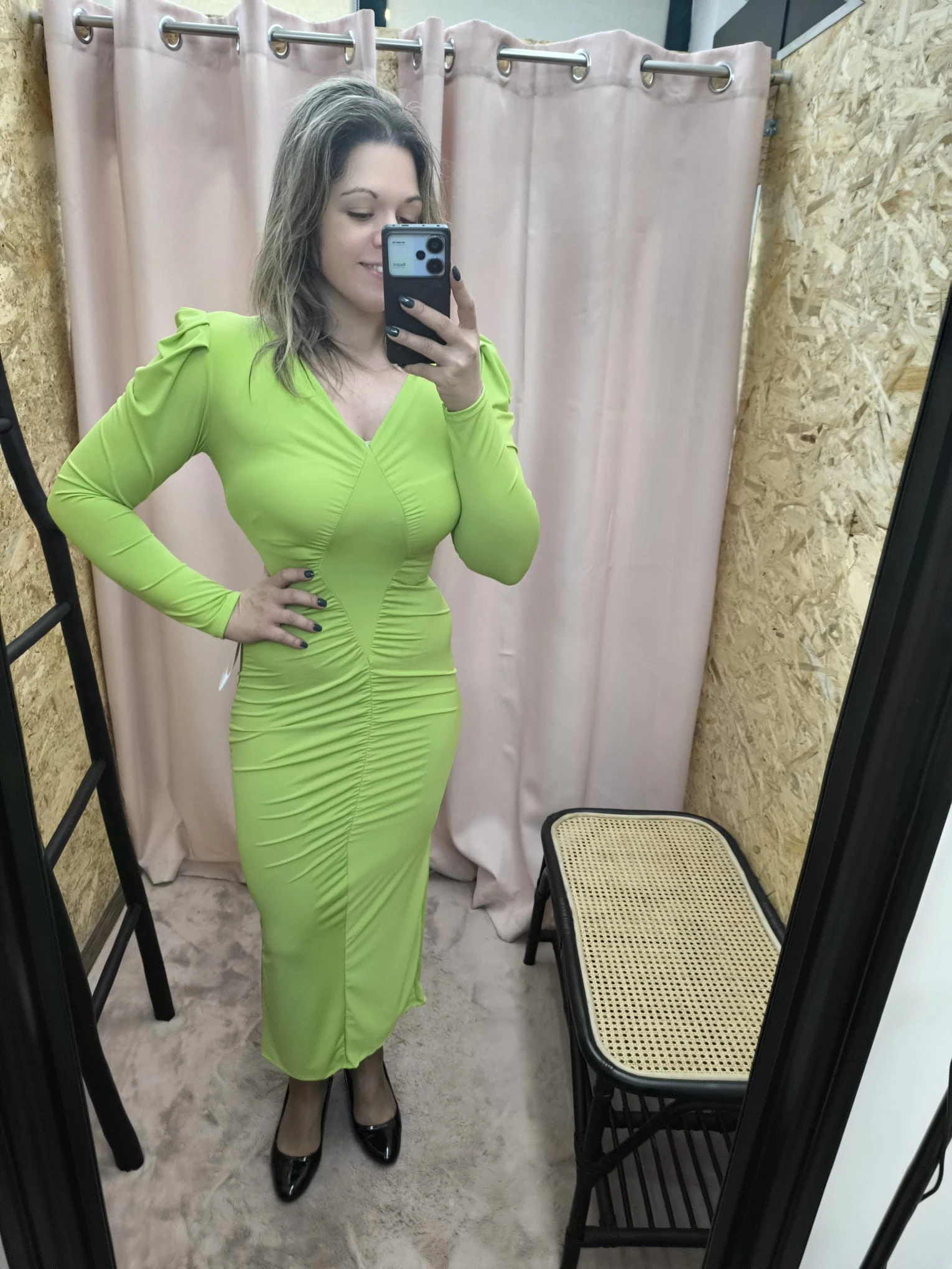 O Vestido Elegância Perfeita é a escolha ideal para mulheres que valorizam sofisticação e conforto. Com um design midi ajustado, mangas longas e um elegante decote em V, ele modela a silhueta com charme. Disponível nas cores branco, rosa barbie, verde lima e lilás, este vestido é perfeito para eventos especiais, jantares ou até mesmo para um look casual chique.