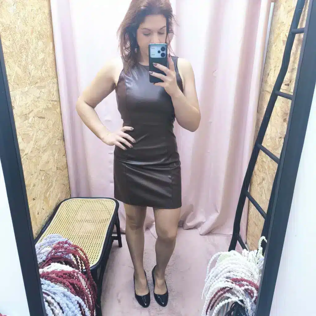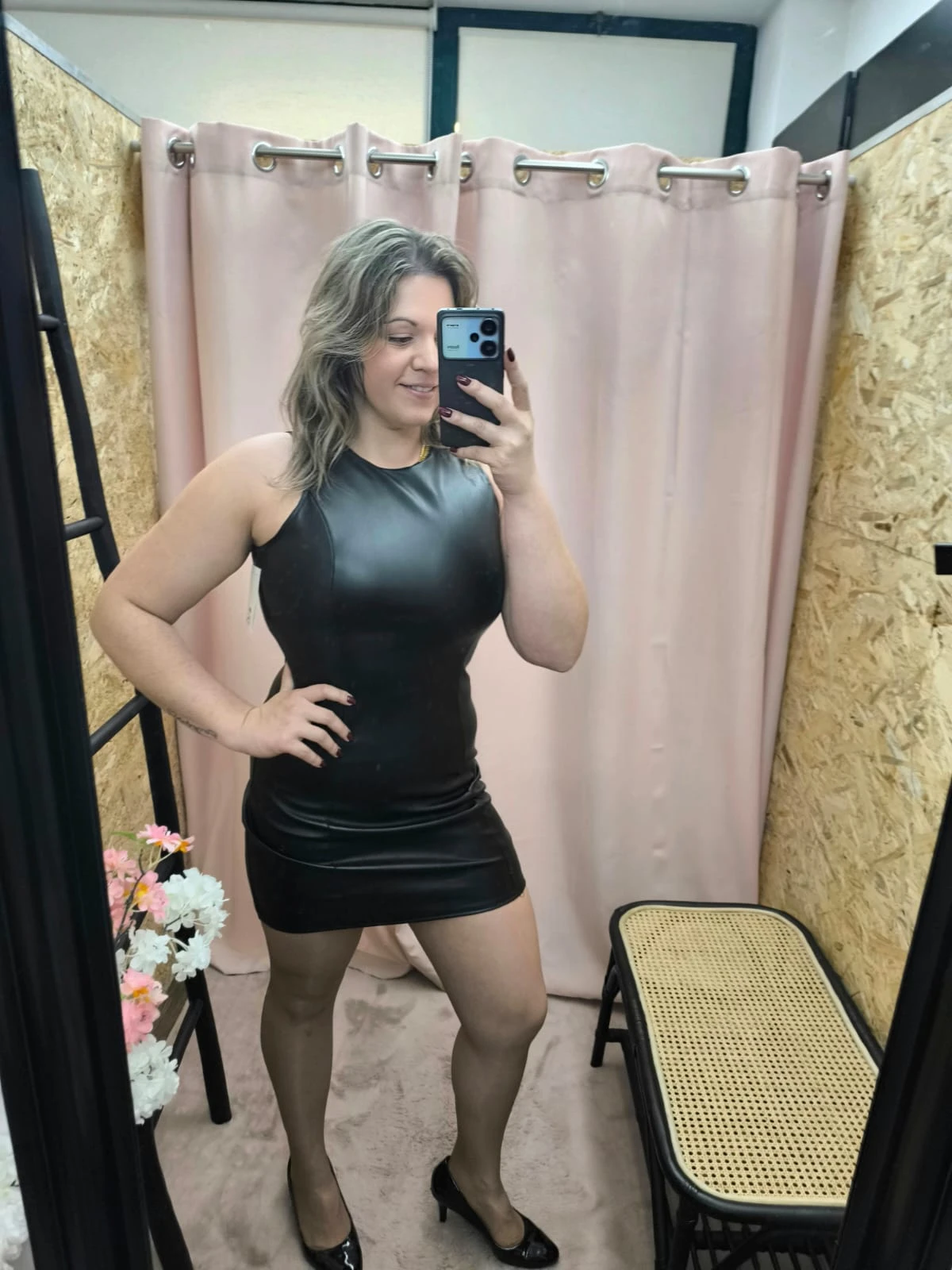 Apresentamos este vestido Essência Glam em imitação de pele, perfeito para destacar a sua elegância com um toque moderno e ousado. Esta peça foi desenhada para mulheres que procuram um visual marcante, combinando sofisticação com um estilo arrojado e contemporâneo.