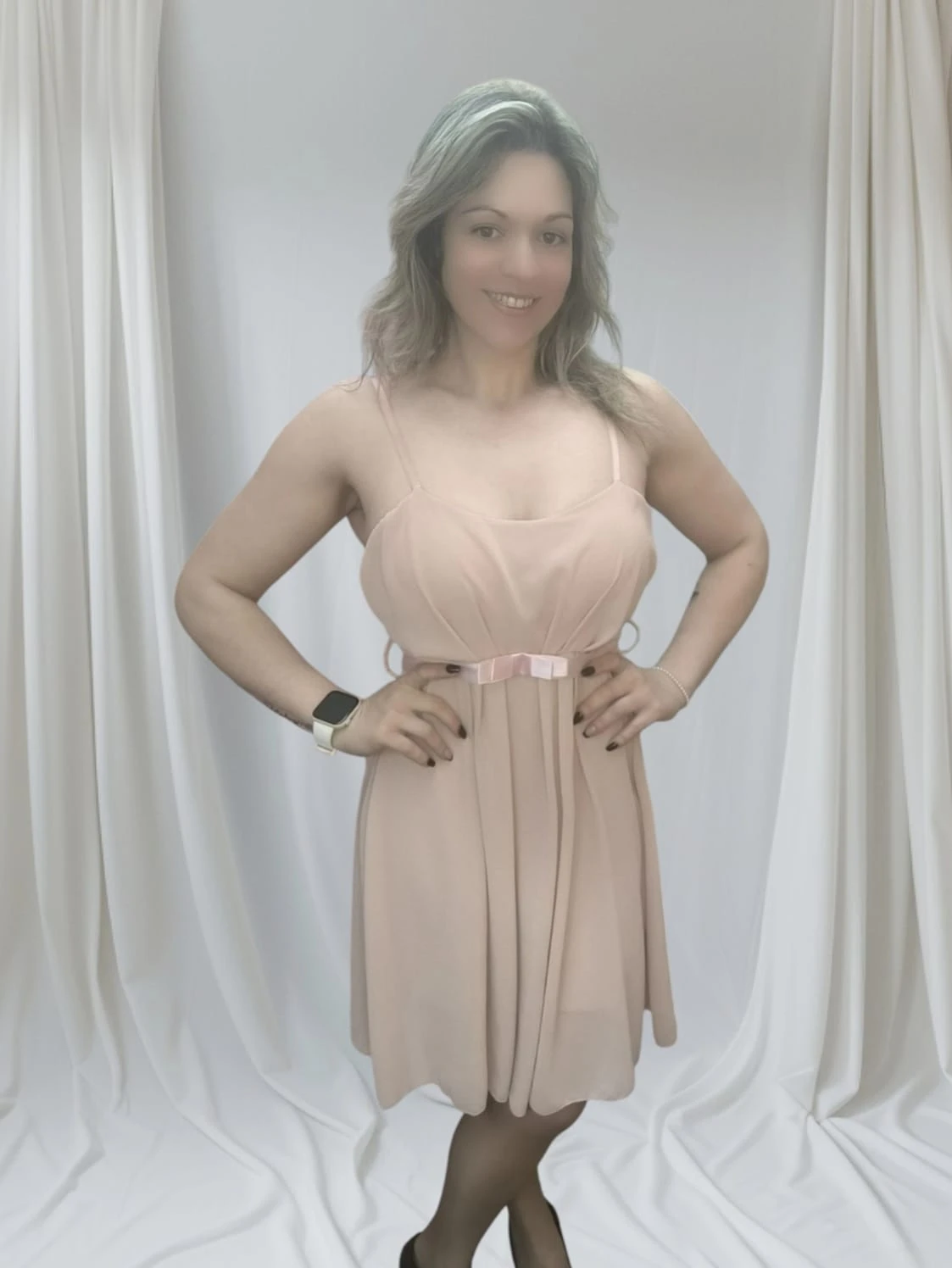O Vestido Laço Encanto foi desenhado para mulheres que valorizam a combinação entre charme e conforto. Este vestido curto apresenta alças finas ajustáveis e um elegante laço de fita na cintura, o que proporciona um caimento perfeito e realça a silhueta feminina. Além disso, a modelagem leve e sofisticada torna-o ideal para eventos casuais, festas ou passeios especiais.