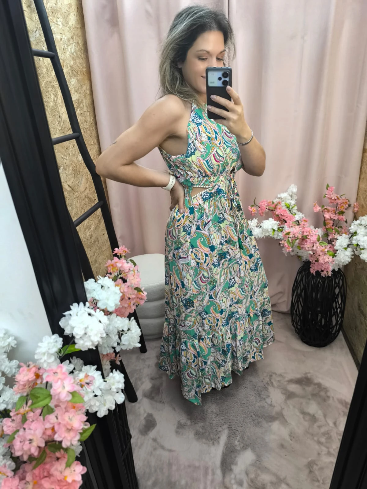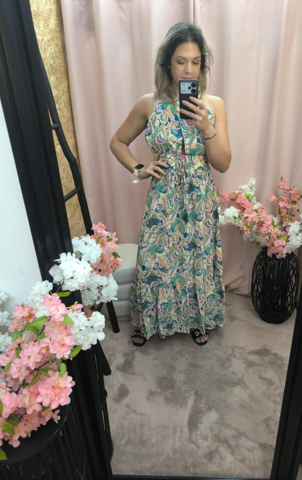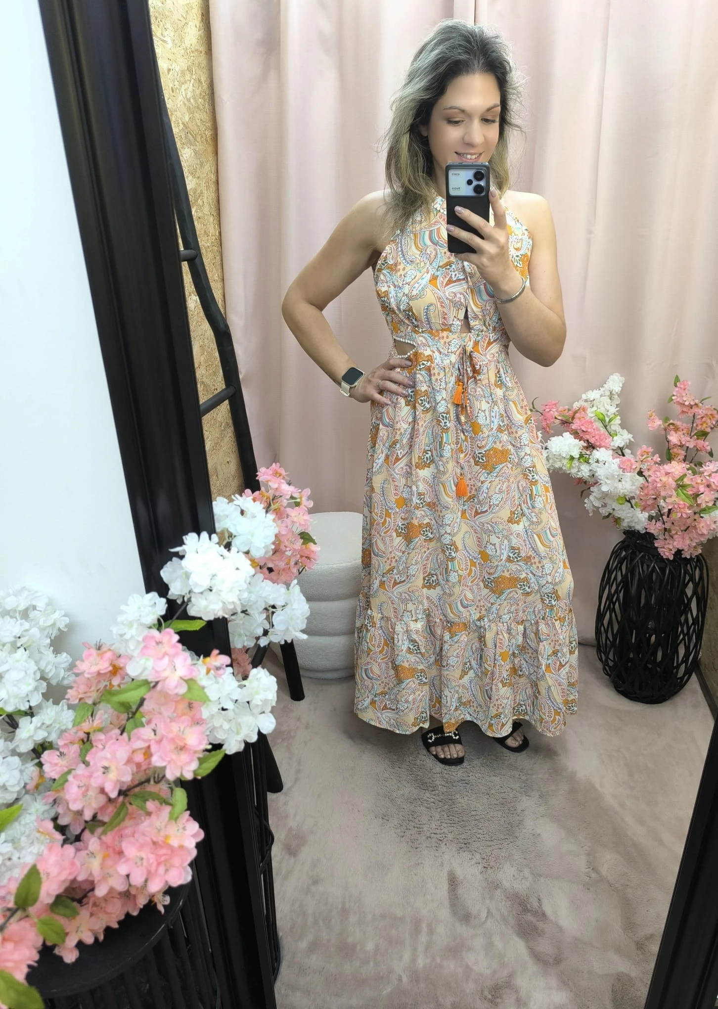O vestido longo estilo boho combina elegância descontraída e conforto, perfeito para dias de verão e ocasiões especiais.