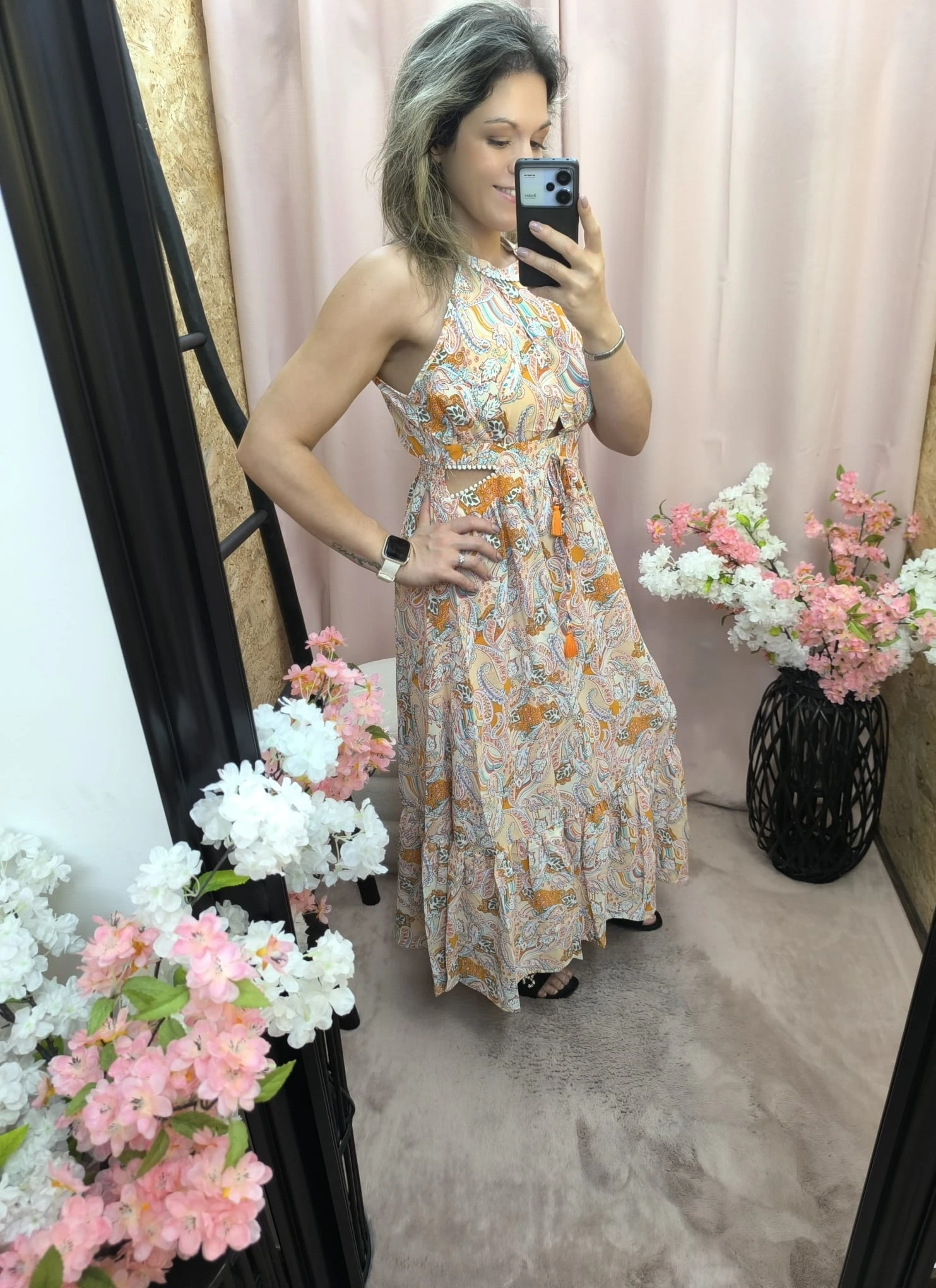 O corte fluido deste vestido longo estilo boho permite movimento e leveza, sendo ideal tanto para ocasiões casuais como para eventos mais elegantes. Consequentemente, é uma peça versátil que acompanha diferentes momentos. Seja para um passeio de verão, um jantar descontraído ou até uma festa ao ar livre, este vestido adapta-se com facilidade.