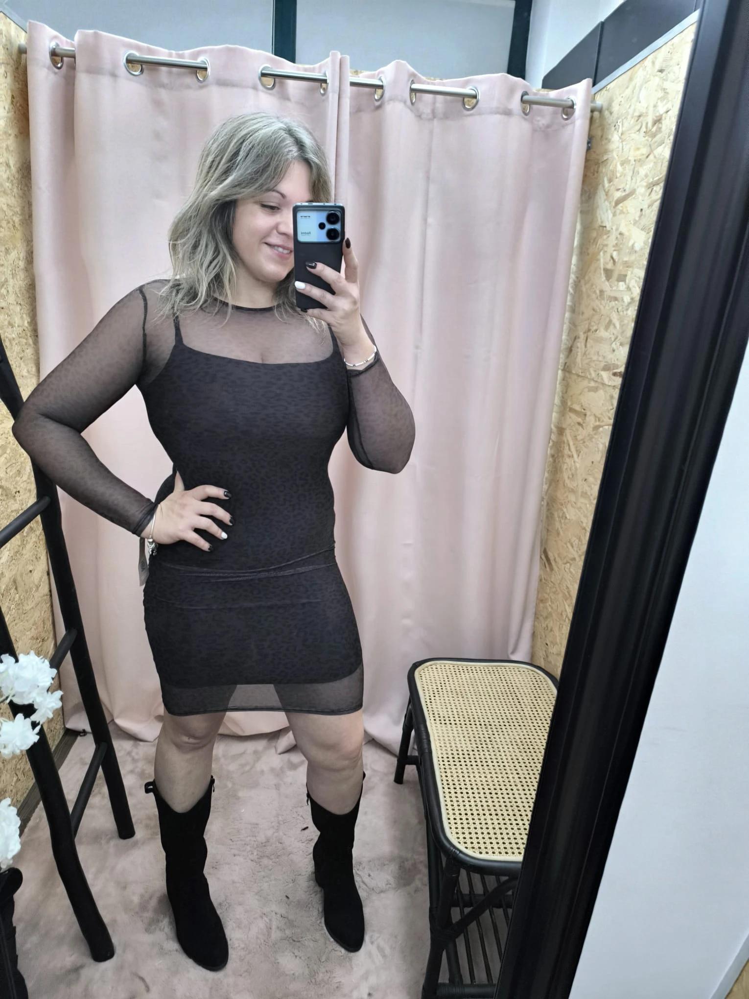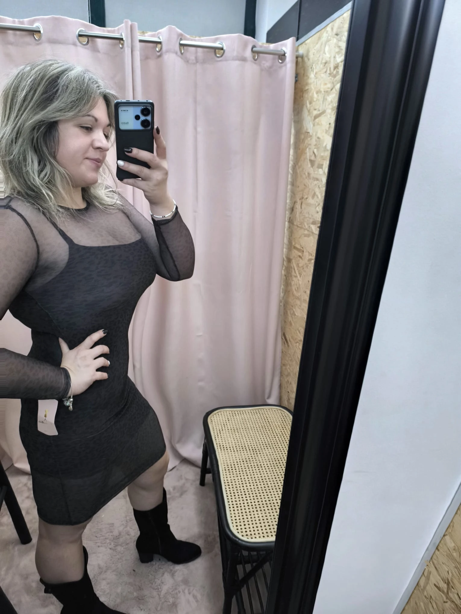 O Vestido Mystic Glam oferece um visual ousado, moderno e cheio de personalidade para mulheres que gostam de destacar-se. O modelo combina malha transparente com um forro interno preto, criando um contraste elegante que valoriza as curvas com sutileza. Além disso, a leve transparência do tecido, aliada ao corte justo, confere sensualidade sem exageros.