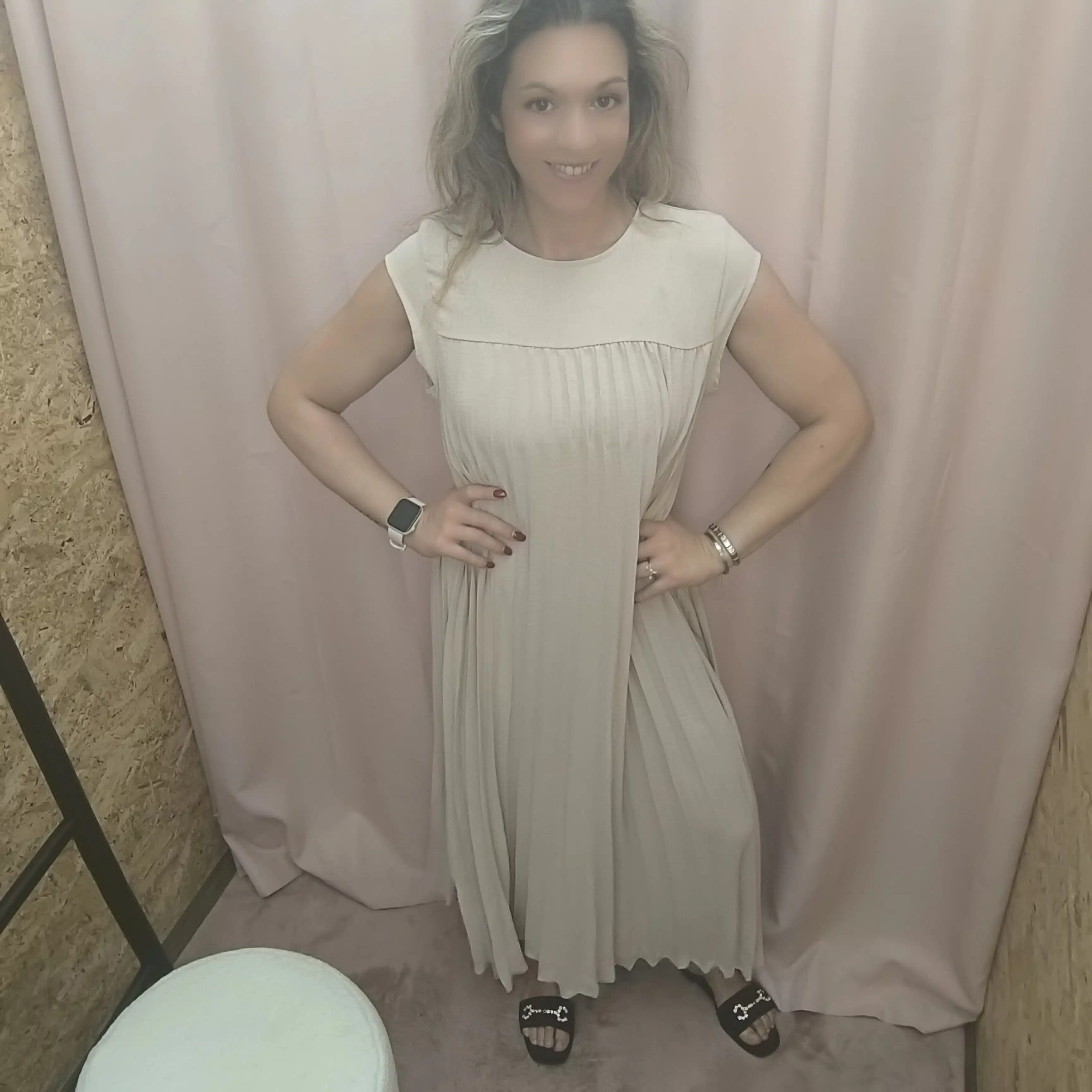 Em resumo, se procuras um vestido prático, com charme e um toque de elegância boémia, o Vestido Plissado Elegância Solta é a adição perfeita ao teu guarda-roupa