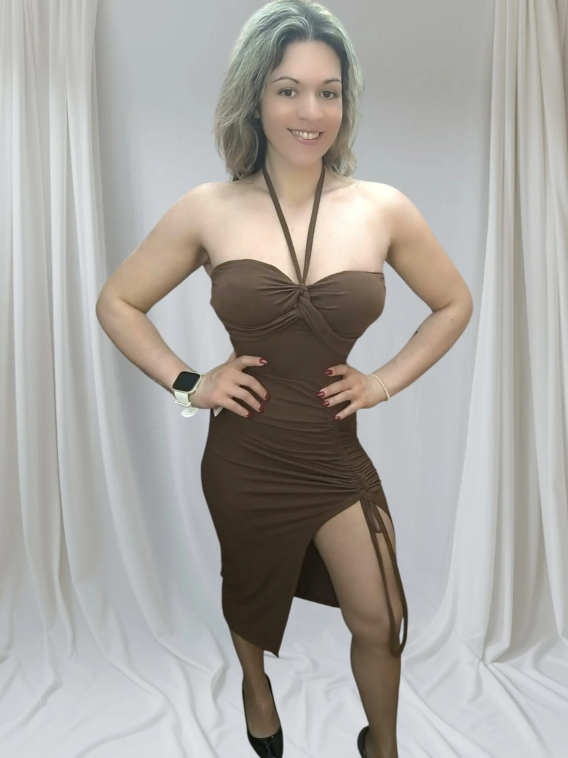 Fabricado com tecido maleável e altamente elástico, adapta-se facilmente a diferentes tipos de corpo. Este modelo apresenta tamanho único, vestindo confortavelmente desde o S até ao L/XL. Assim, quem procura versatilidade e conforto encontra neste vestido a solução perfeita. O vestido sensual com abertura lateral está disponível em três cores sofisticadas: preto clássico, castanho chocolate e bege claro – todas pensadas para realçar a silhueta e combinar com diversos estilos.