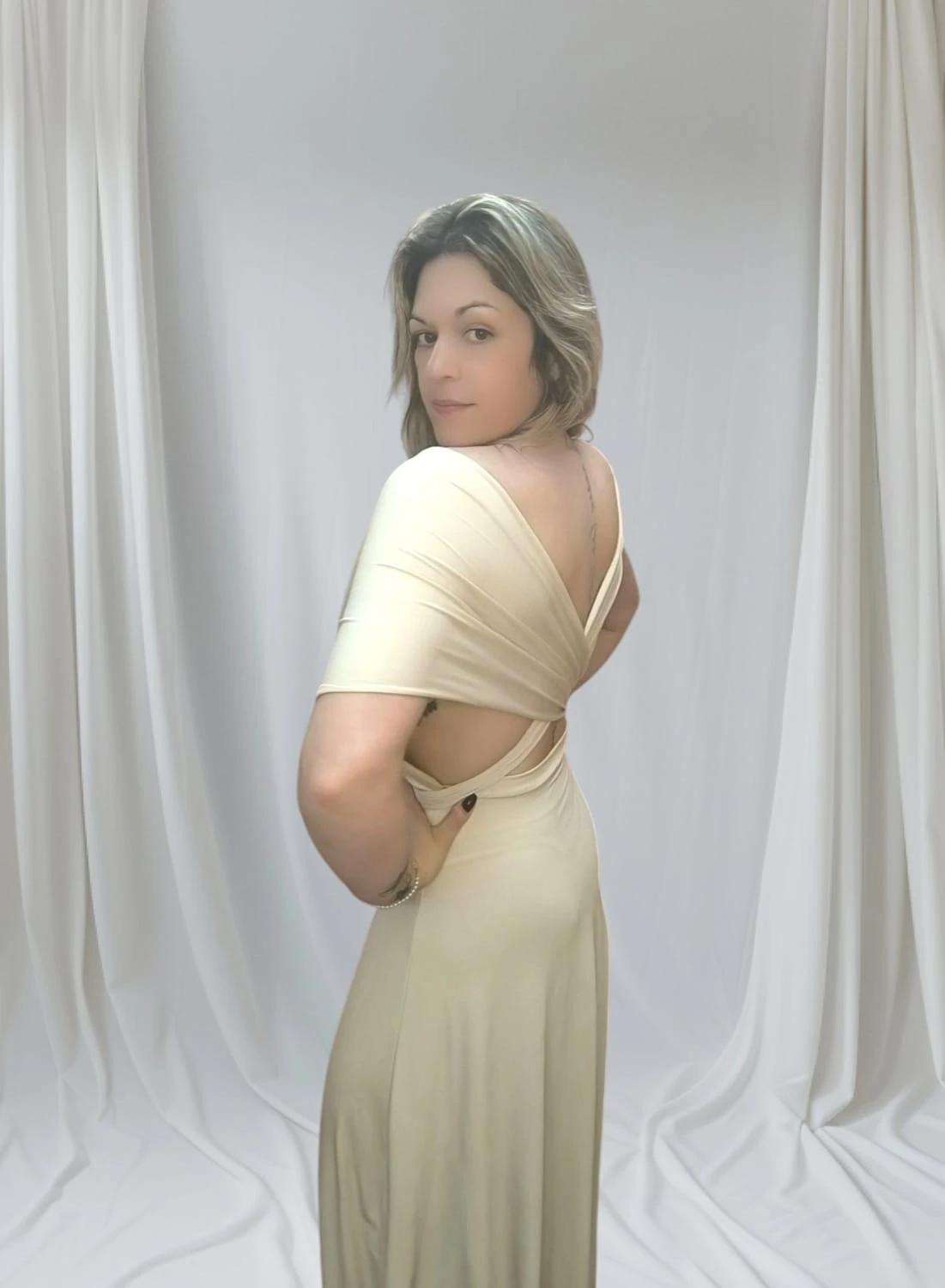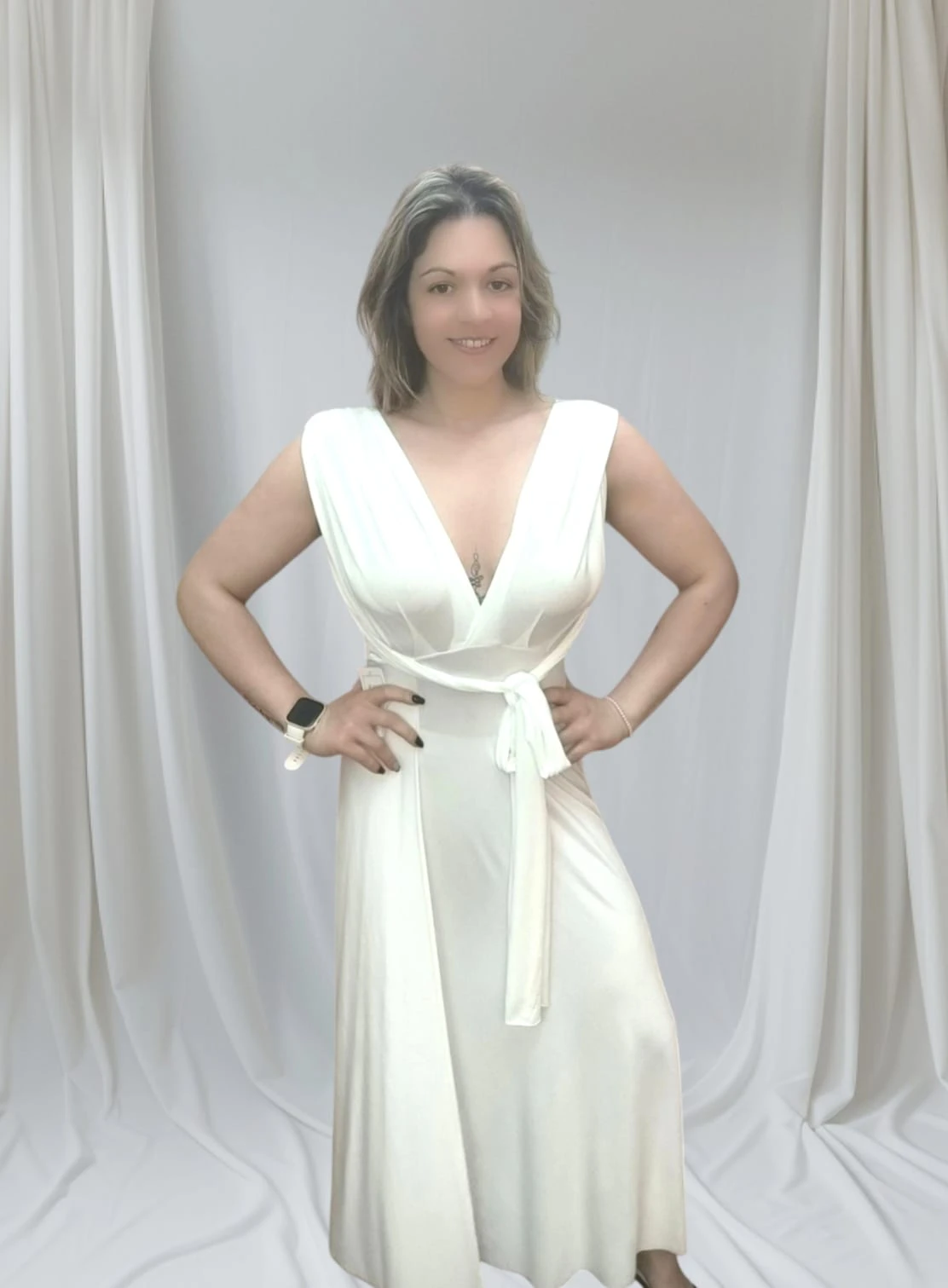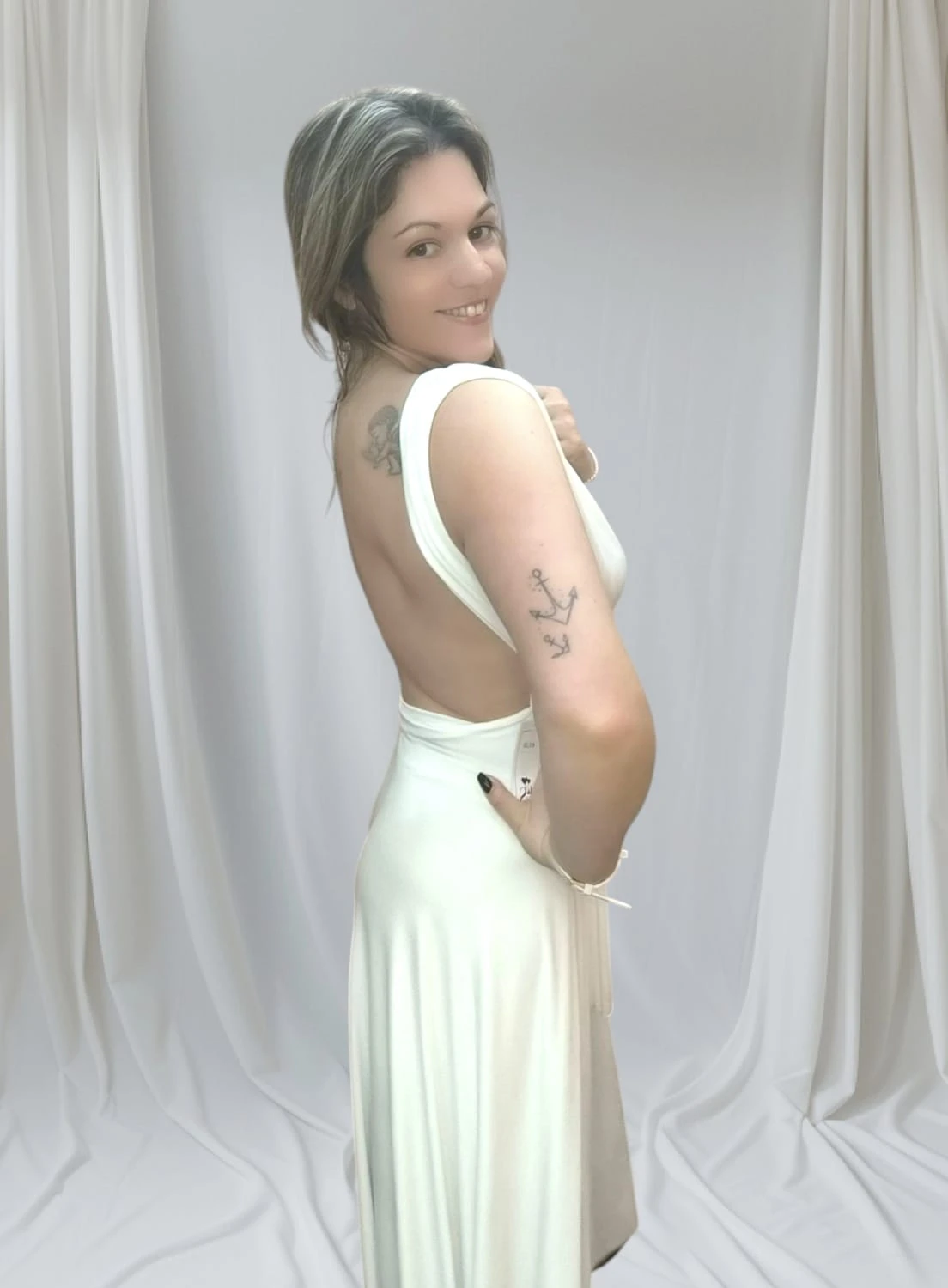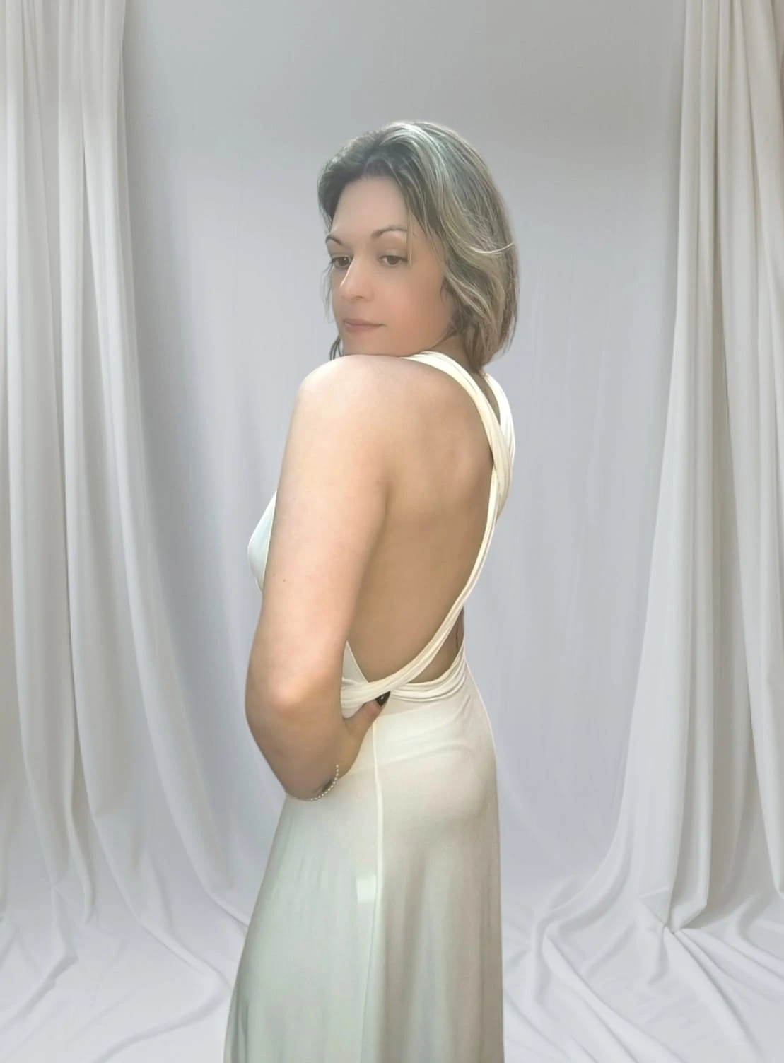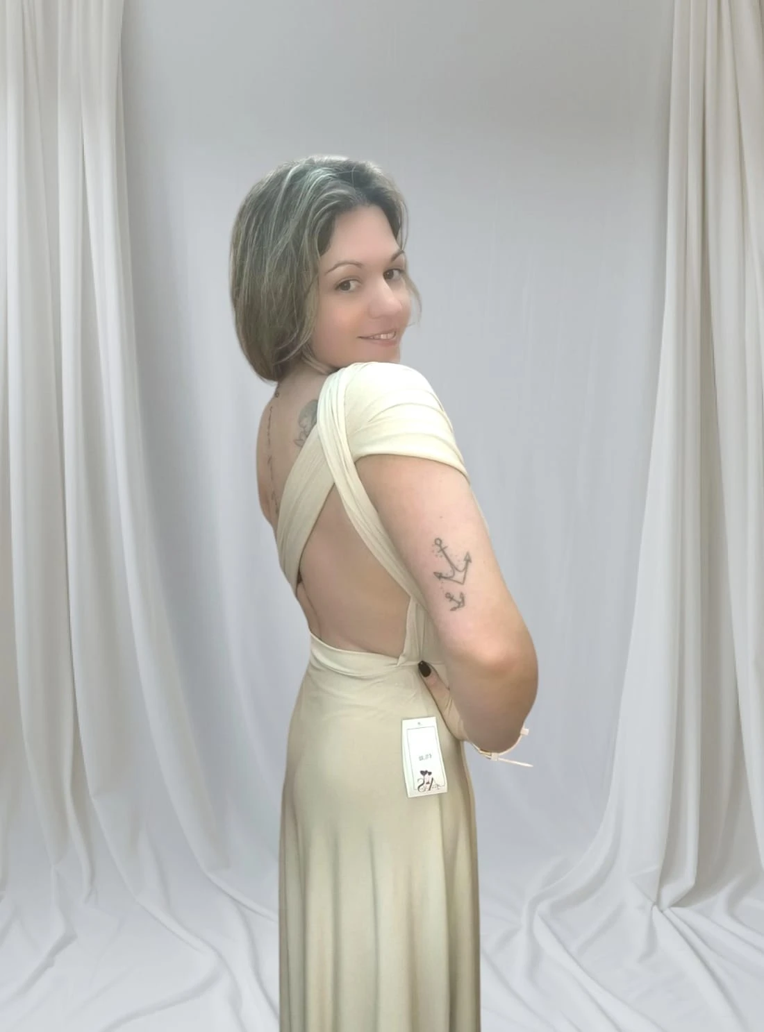 O Vestido Versátil Elegante é a escolha ideal para mulheres que procuram conforto, estilo e liberdade para criar diferentes looks com uma só peça. Disponível em bege e branco, veste do tamanho único até L/XL.