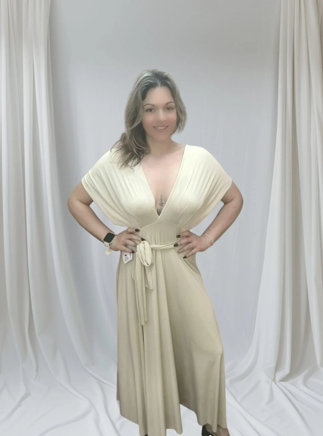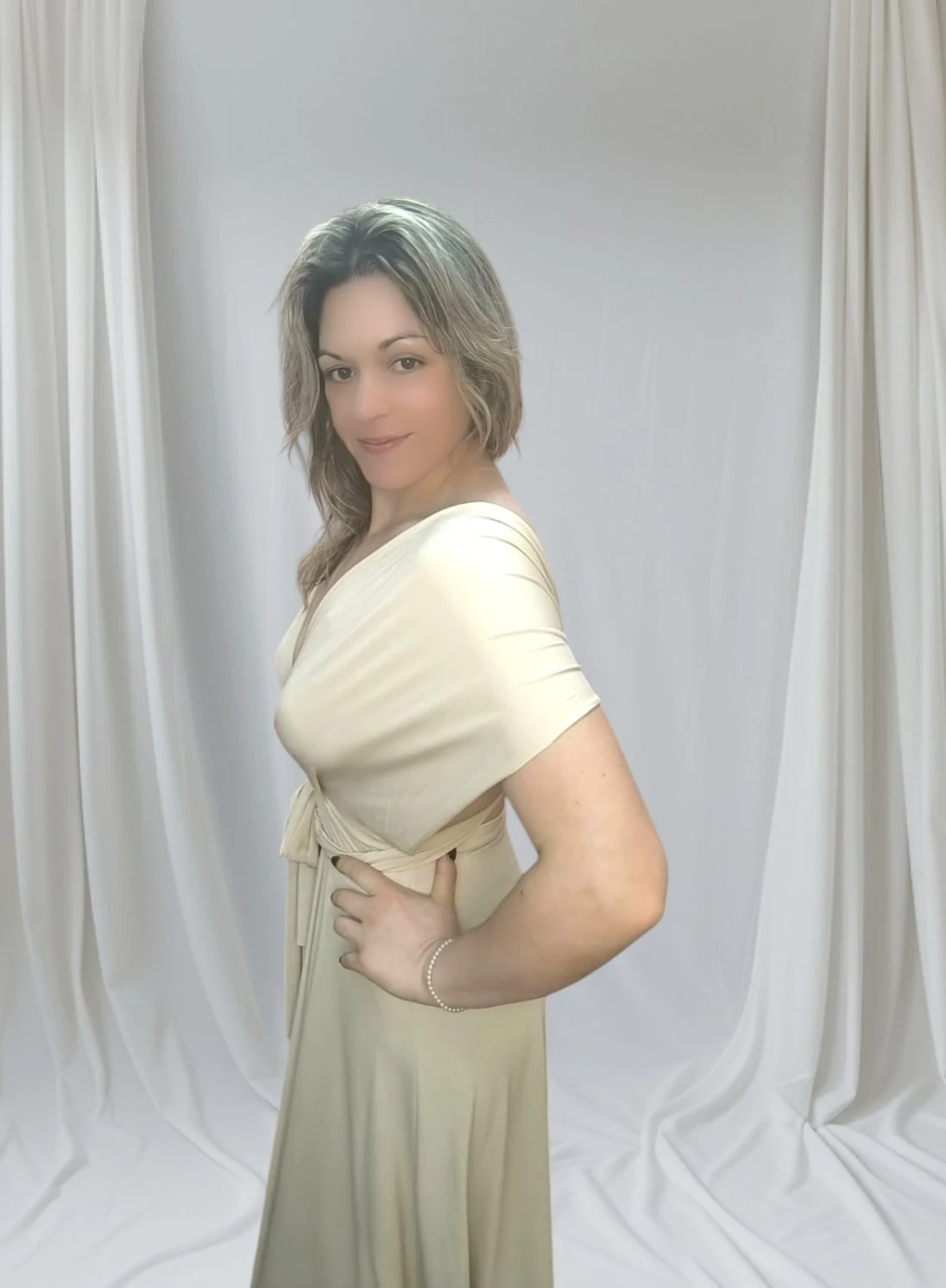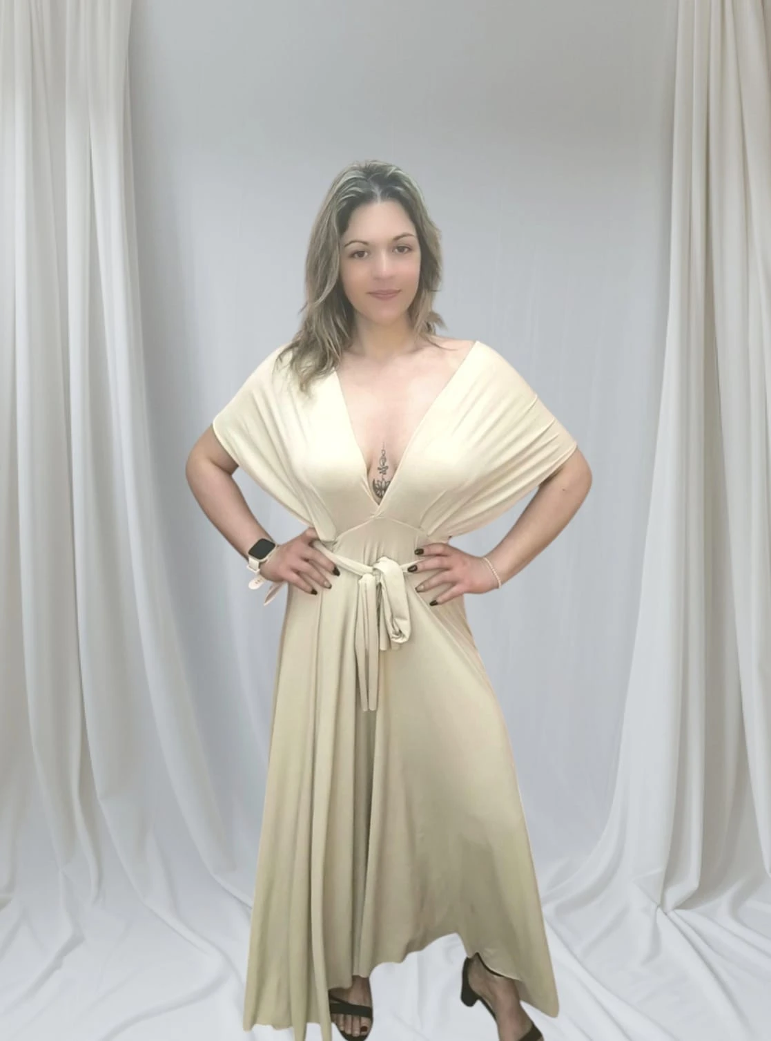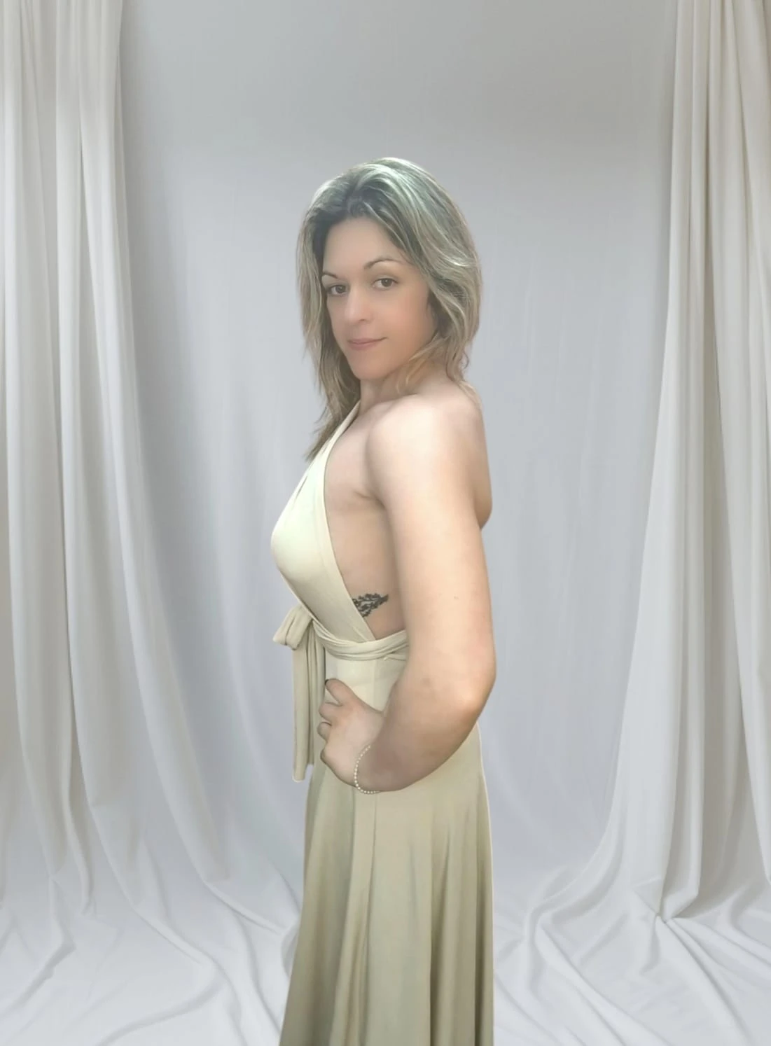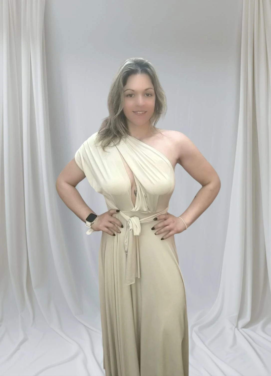 O Vestido Versátil Elegante é a escolha ideal para mulheres que procuram conforto, estilo e liberdade para criar diferentes looks com uma só peça. Disponível em bege e branco, veste do tamanho único até L/XL.